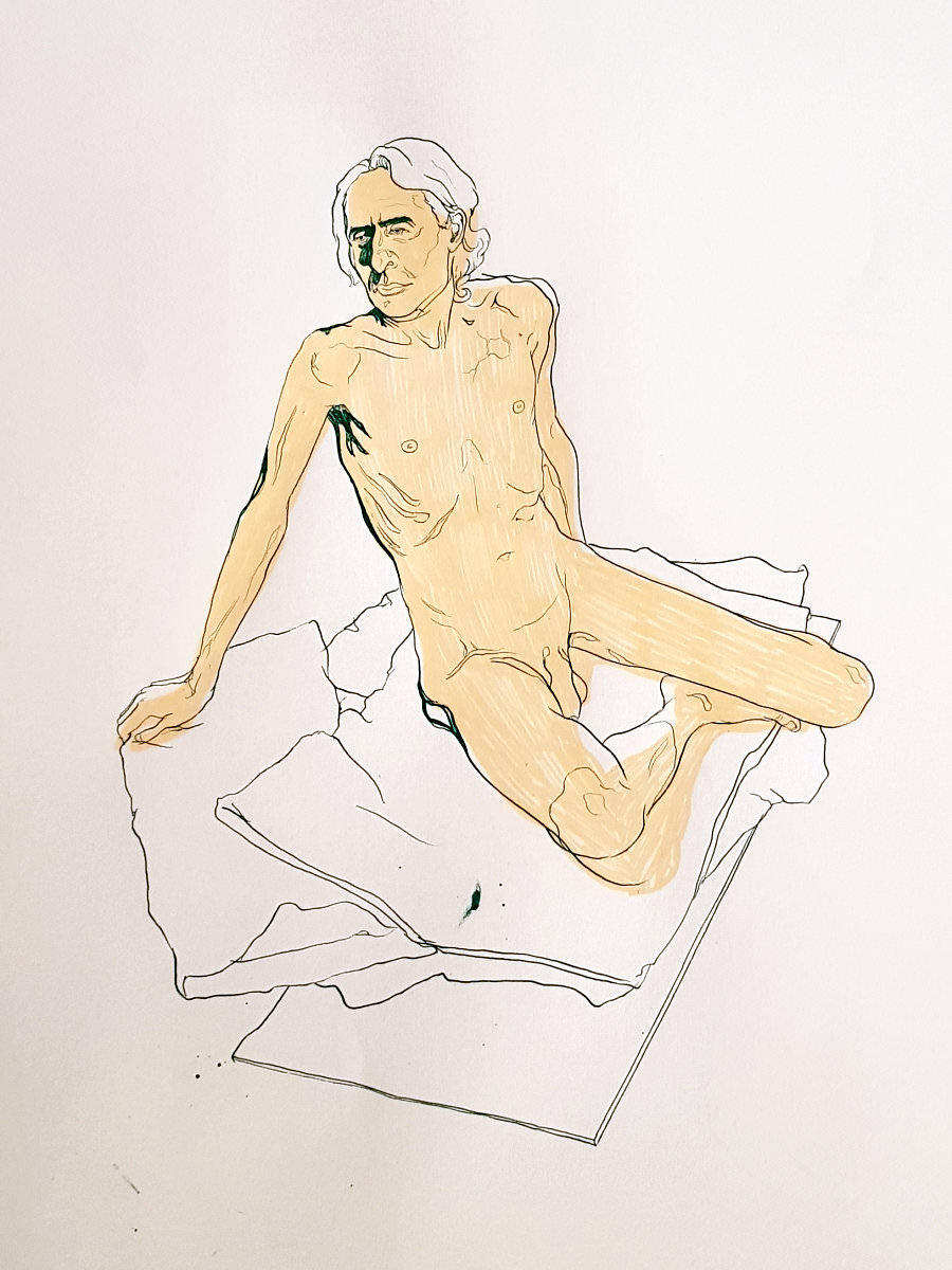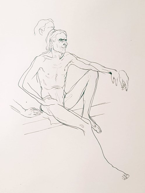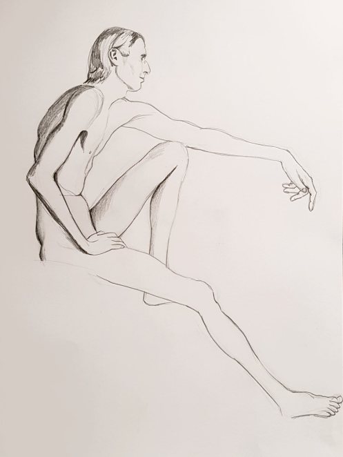 During the break, everybody disappeared downstairs for drinks while I stayed loyal to the precautionary glass of wine I’d bought earlier. A couple of our artists decided they would remain chatting at the bar, so my prediction of 8 attendees for the session was ultimately correct in a roundabout way. As long as they’ve paid and are happy, it’s all fine by me. For those who came back, we resumed with a 10-minute standing pose.