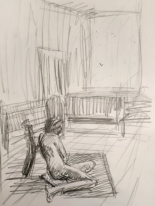 I’ve been modelling long enough to know that heatwaves and life drawing don’t really mix. By some unwritten inverse law, a sudden surge in temperatures will be matched by an equivalent plummet in attendances at art groups. So, whilst it’s a dream for the model to be cosily warm, the advantage is reduced by a shortfall of artists. Such was the situation on my last visit to the Royal Inn on the Park.