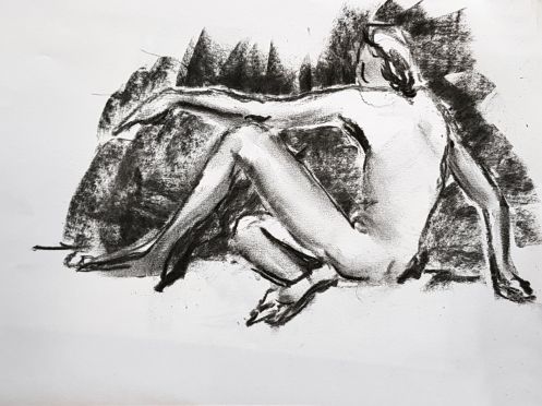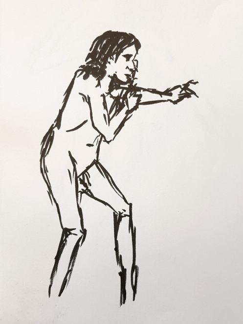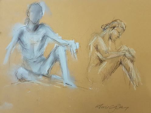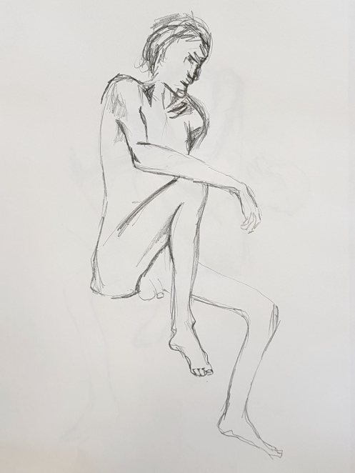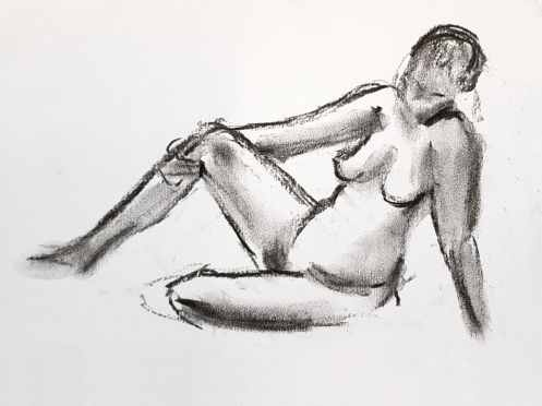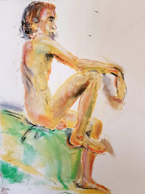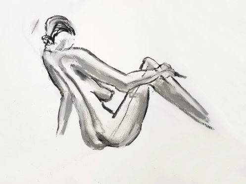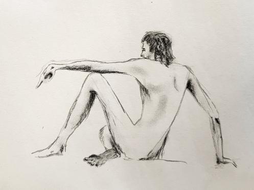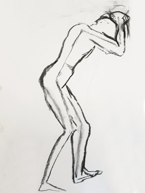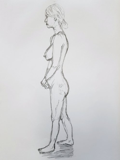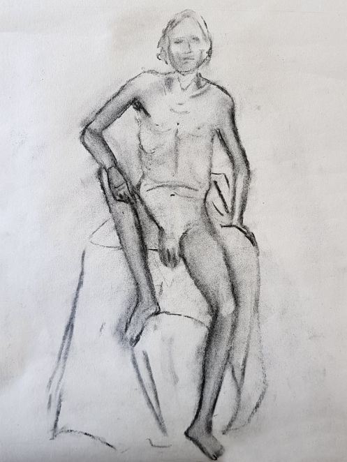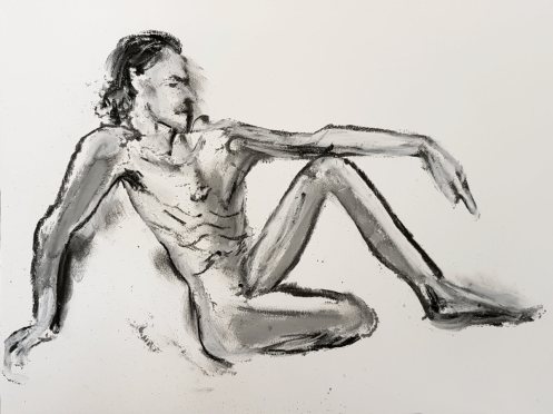 West Horndon Art Group meets at West Horndon Village Hall in the parish village of West Horndon. Once a year they organise a life drawing morning with one female model and one male model. Natansky lives just one town over, so is very convenient as their female model. I’m three towns over, and this year got the nod as their male.