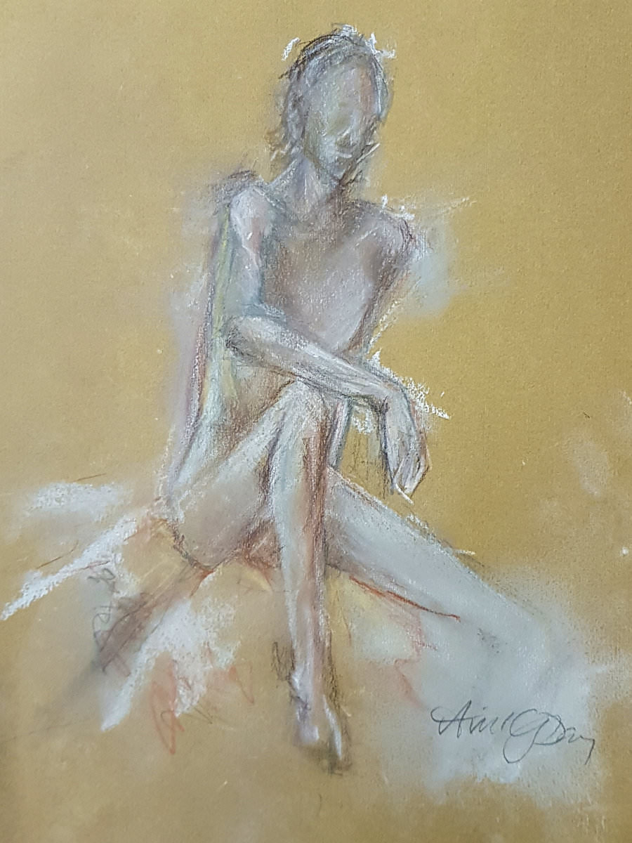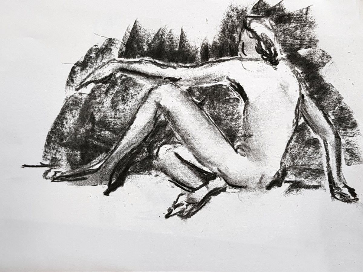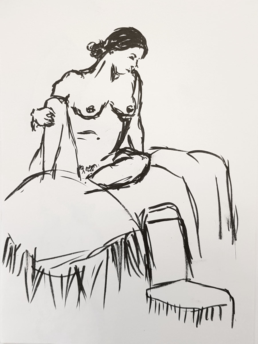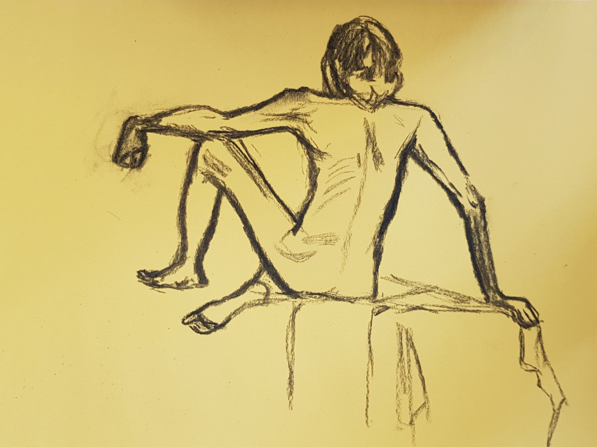 West Horndon Art Group meets at West Horndon Village Hall in the parish village of West Horndon. Once a year they organise a life drawing morning with one female model and one male model. Natansky lives just one town over, so is very convenient as their female model. I’m three towns over, and this year got the nod as their male.