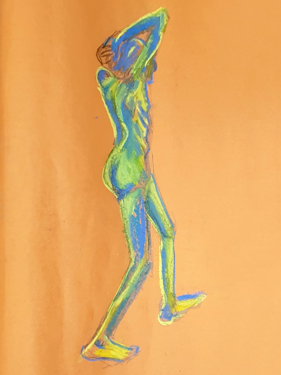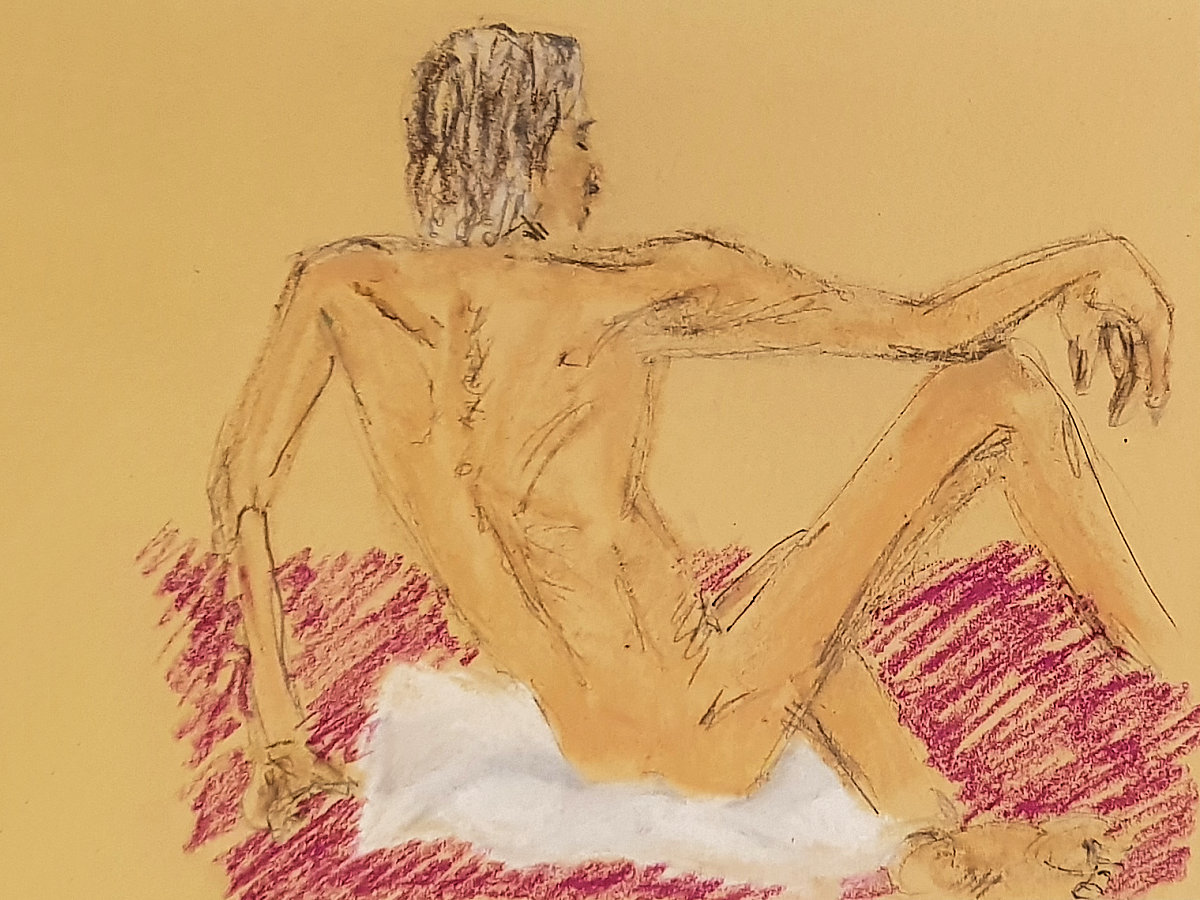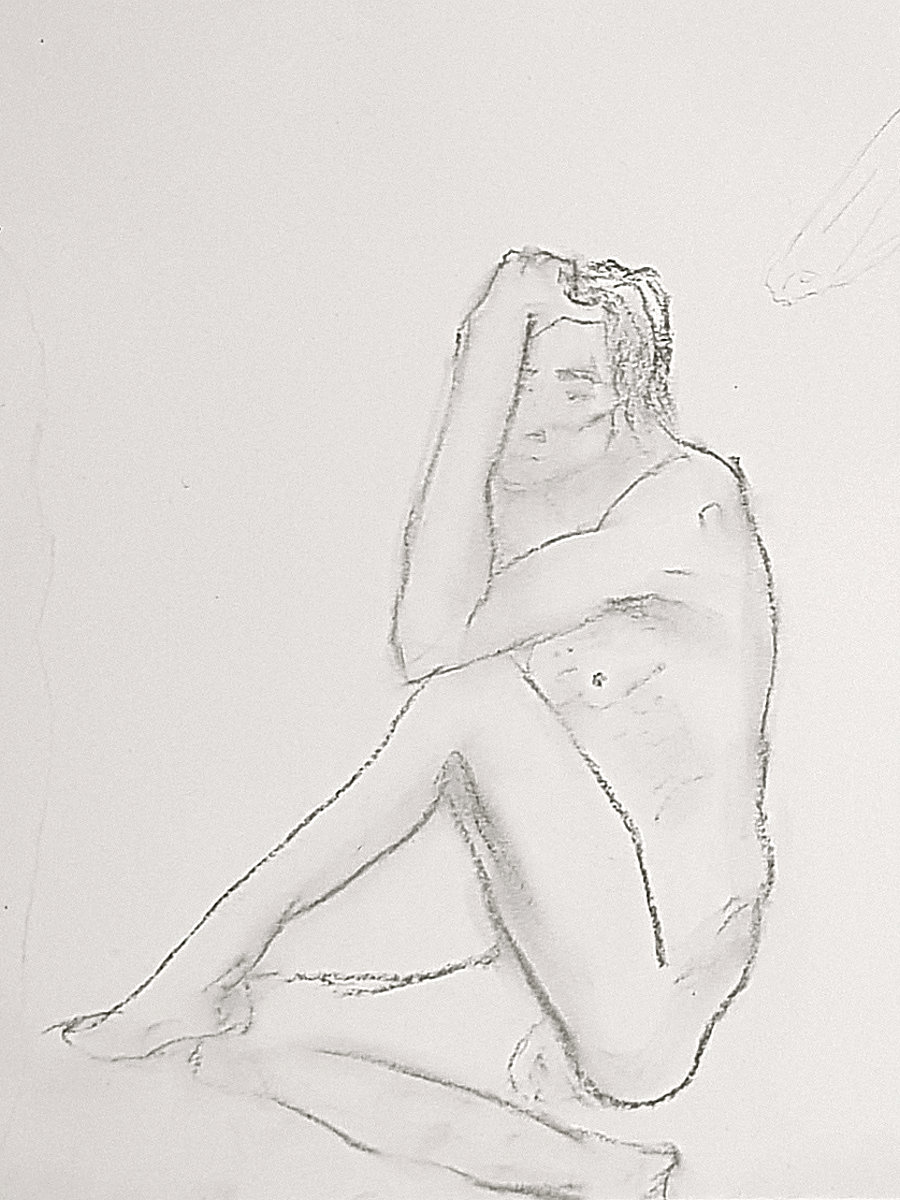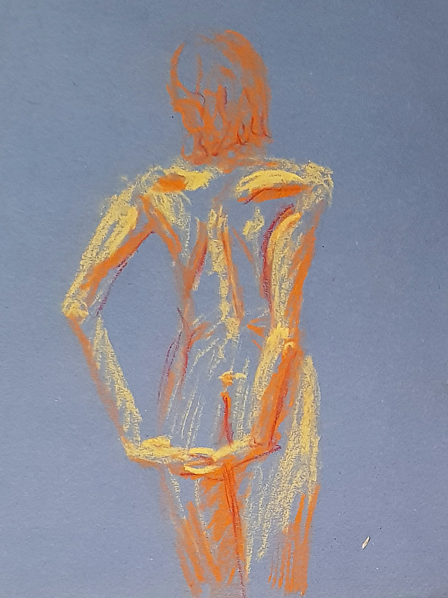 One thing that never alters is the warm welcome from head cave-dweller, Karen. She looks after her models and artists with equal attentiveness, always bringing a positive energy to the occasion. Having fired-up the group, she then gets us started with short dynamic work: five 1-minute poses, two 5-minute poses and two 10-minute poses, as Ladysmith Black Mambazo serenade us in style from the old CD player.