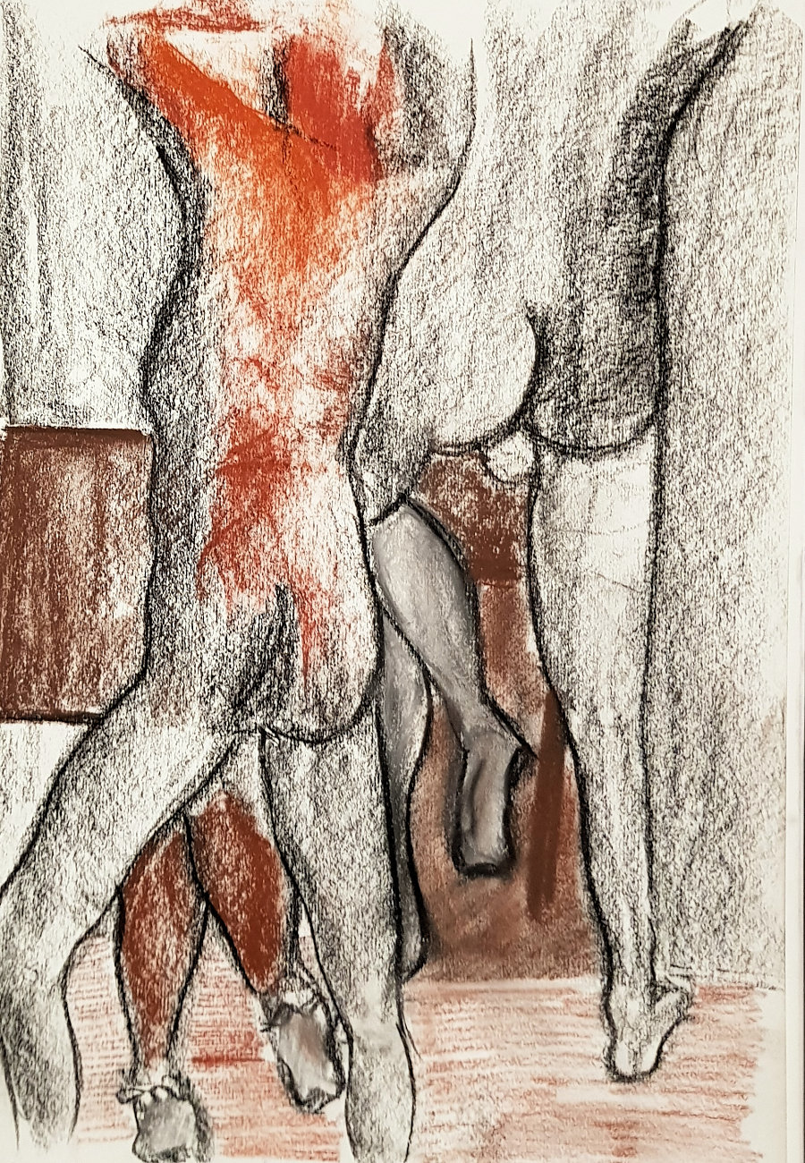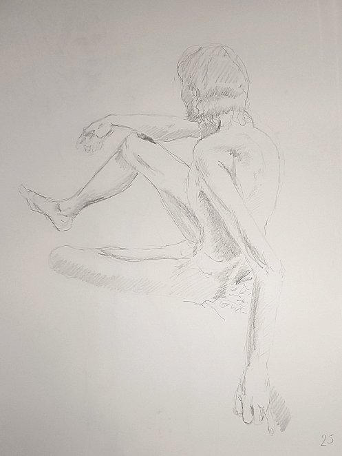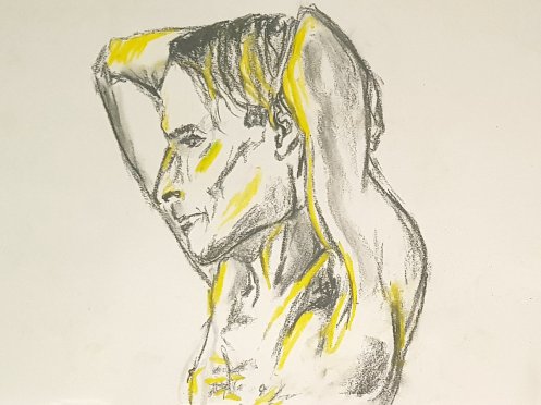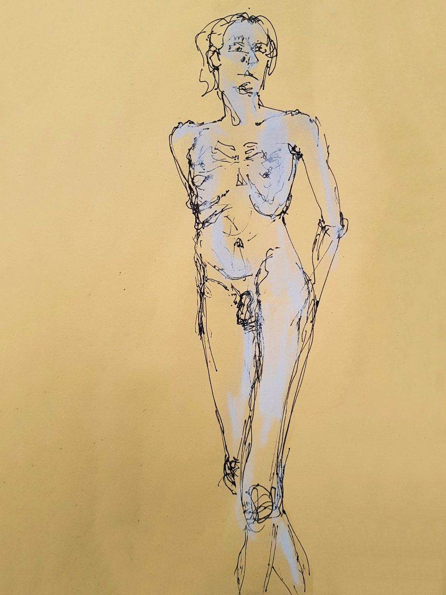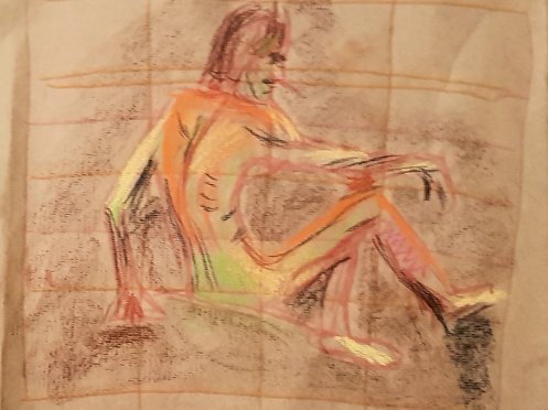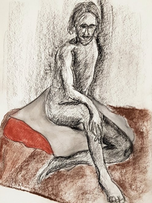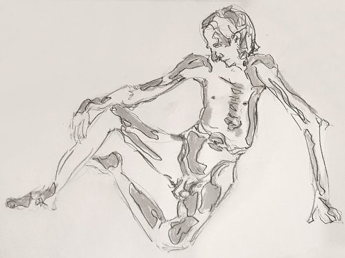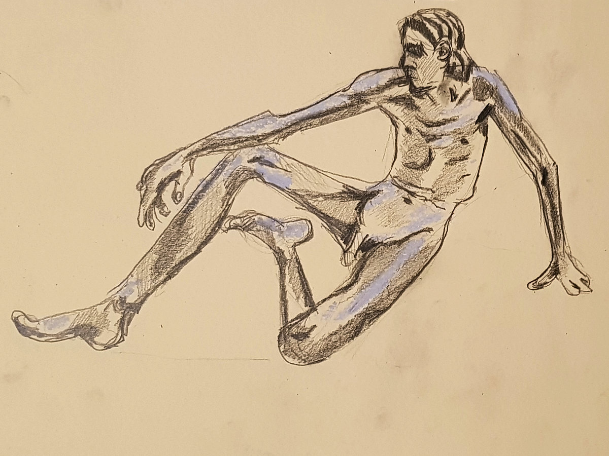 One thing that never alters is the warm welcome from head cave-dweller, Karen. She looks after her models and artists with equal attentiveness, always bringing a positive energy to the occasion. Having fired-up the group, she then gets us started with short dynamic work: five 1-minute poses, two 5-minute poses and two 10-minute poses, as Ladysmith Black Mambazo serenade us in style from the old CD player.