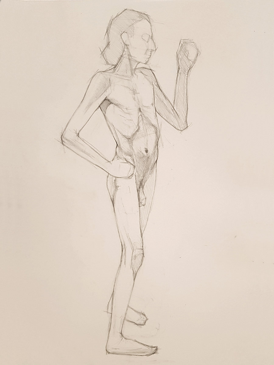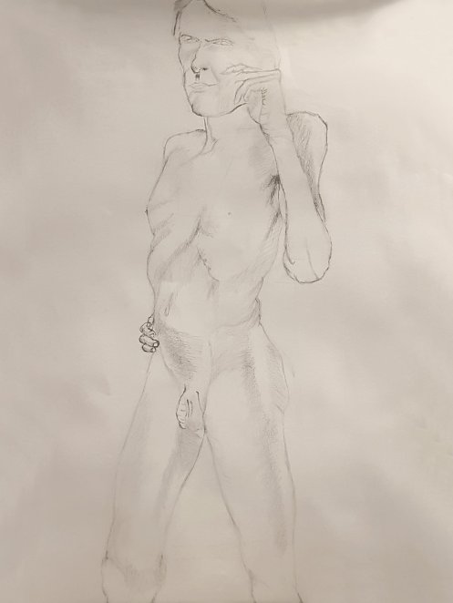 Although we had just a brace of artists and despite me not picking a comfy pose, this was actually a very pleasant serene session. It was interesting to chat with Stephanie and Tony, who are both experienced as artists and familiar with the life drawing scene, and it felt good being able to give them this unexpected bespoke long-pose evening.