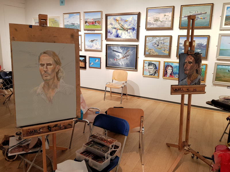 At the outset, it was the hard back that made its presence known to my vertebrae. By the last ten minutes, a numb bum was becoming an aching arse. In truth it wasn’t too bad, but a little softness would not have gone amiss. At least the lighting this evening, rigged for an exhibition of aviation art, was conducive for the creation of fine works.