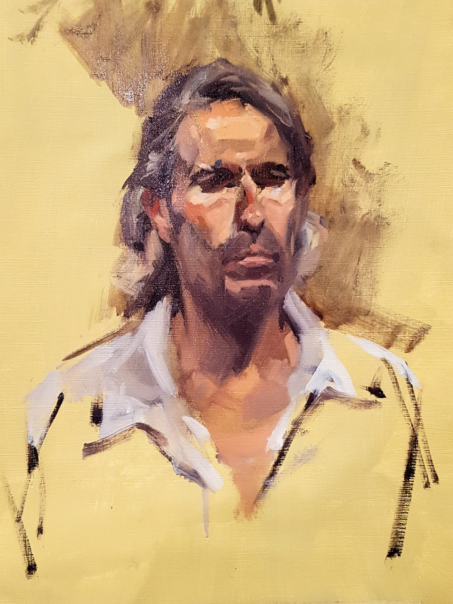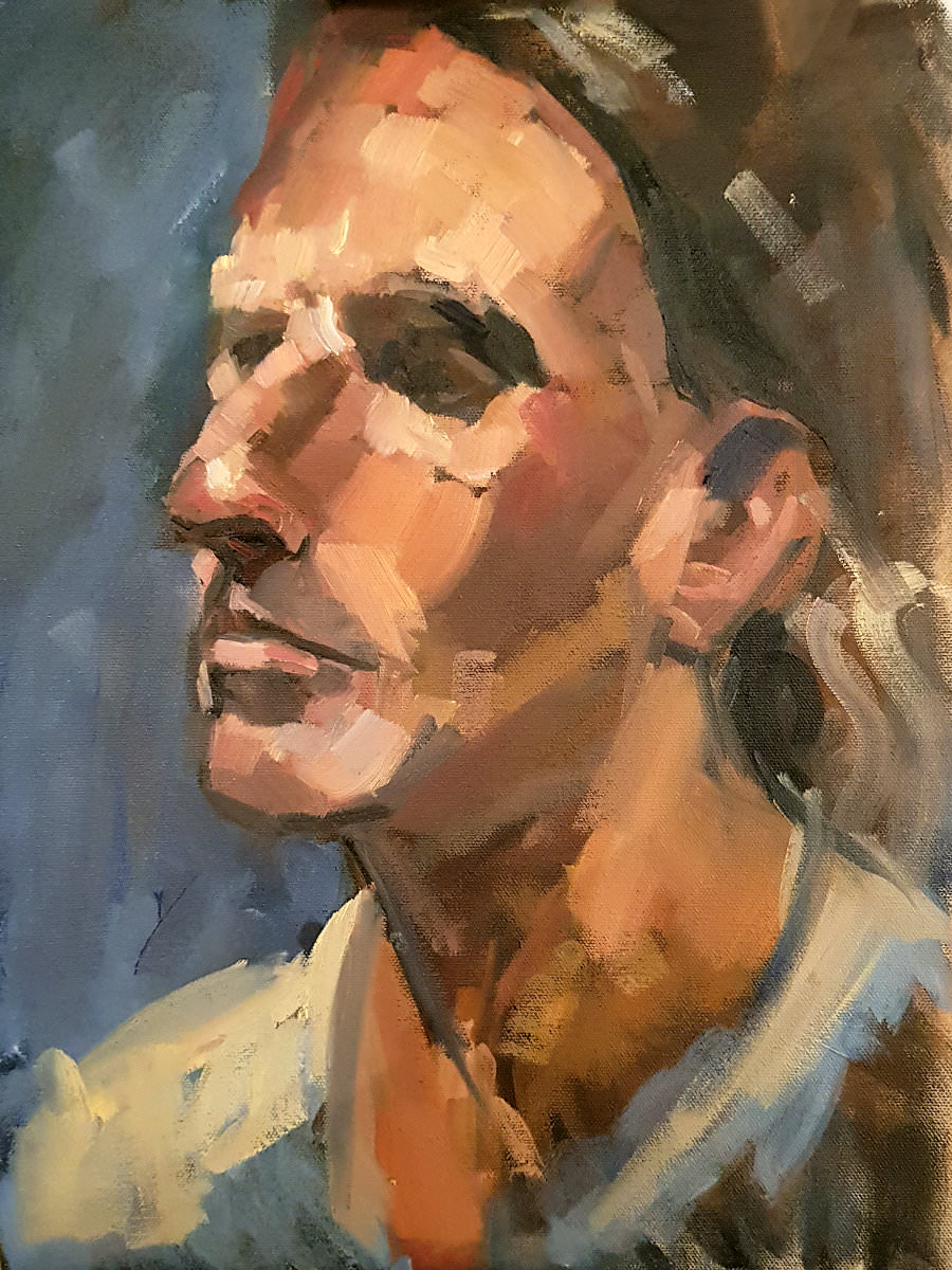 Portrait modelling for Hesketh Hubbard Art Society at Mall Galleries entails sitting motionless on a chair for one whole hour, then taking a fifteen-minute timeout for tea and biscuits before resuming for a further whole hour to the session’s end. Patience, focus, wakefulness and a self-sufficient mind are needed. And a comfortable seat…