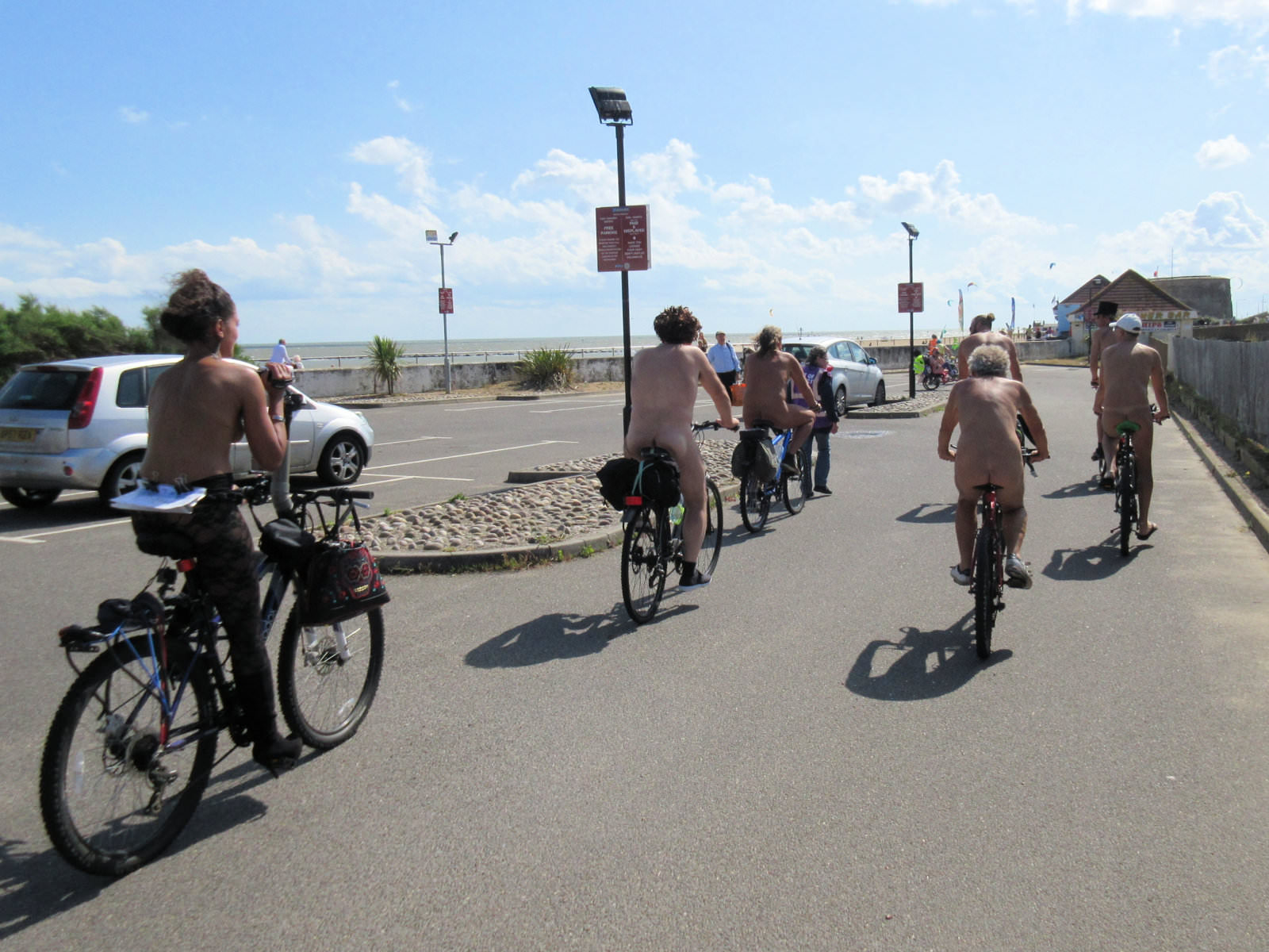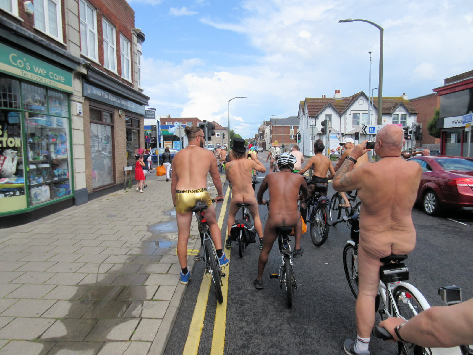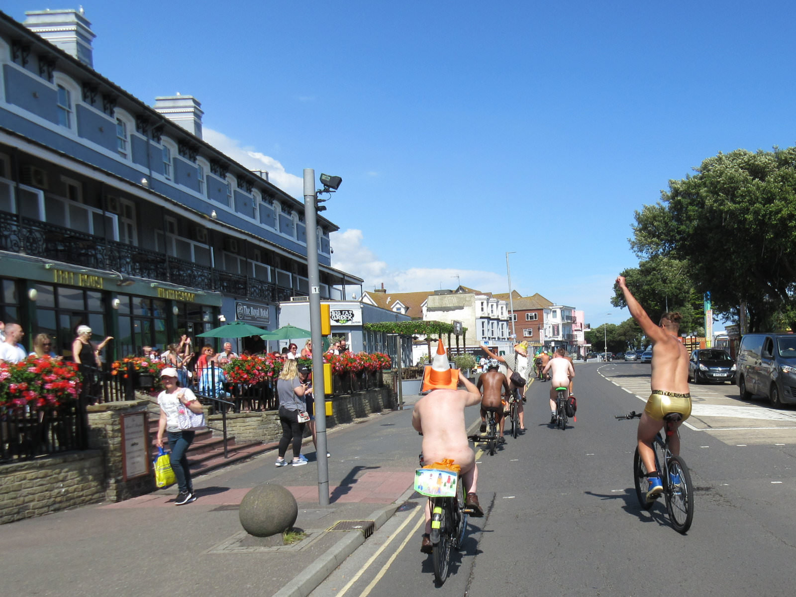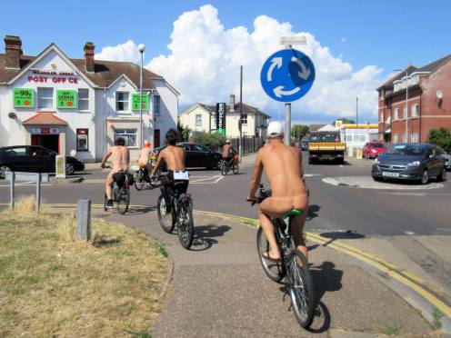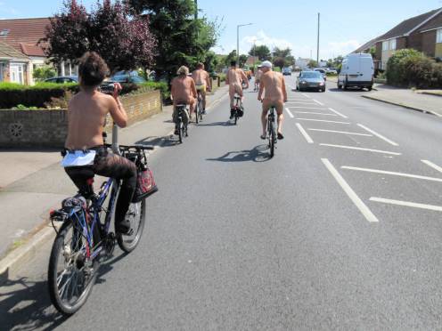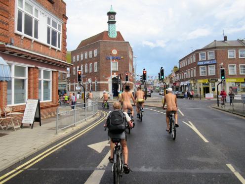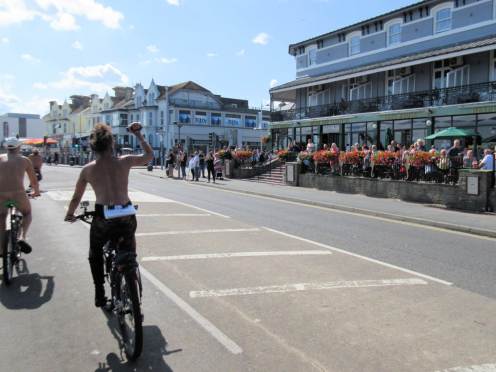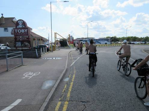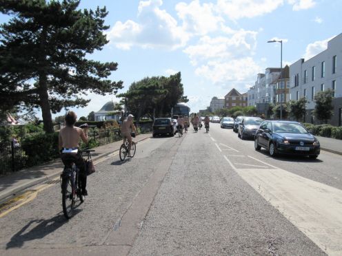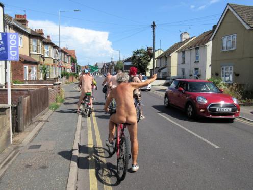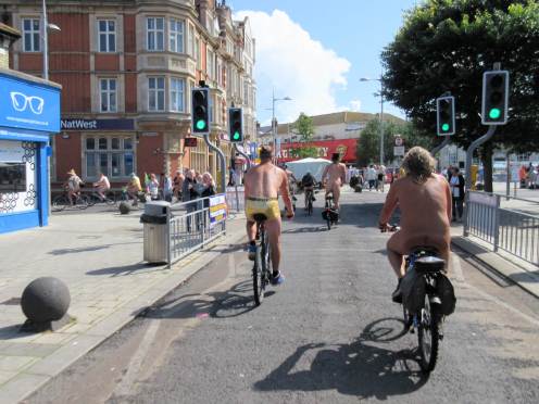There was already a joyful party atmosphere in Clacton’s busy centre, so the sudden unexpected arrival of naked people on bicycles only added to the carnival. All around us cheers, phone cameras and beer glasses were raised in approval. We might have seemed unimaginably weird but we put smiles on faces, and maybe that’s enough.