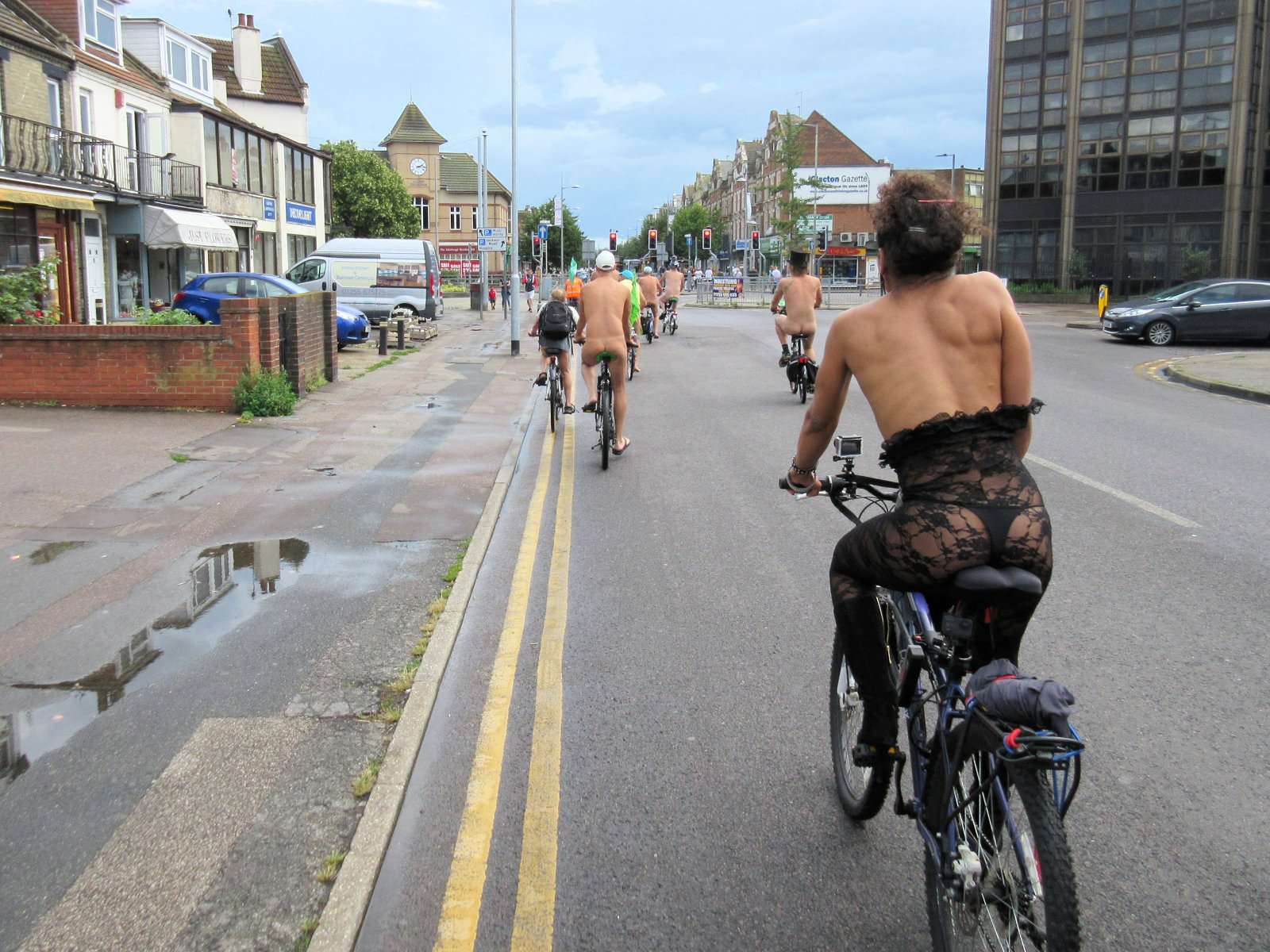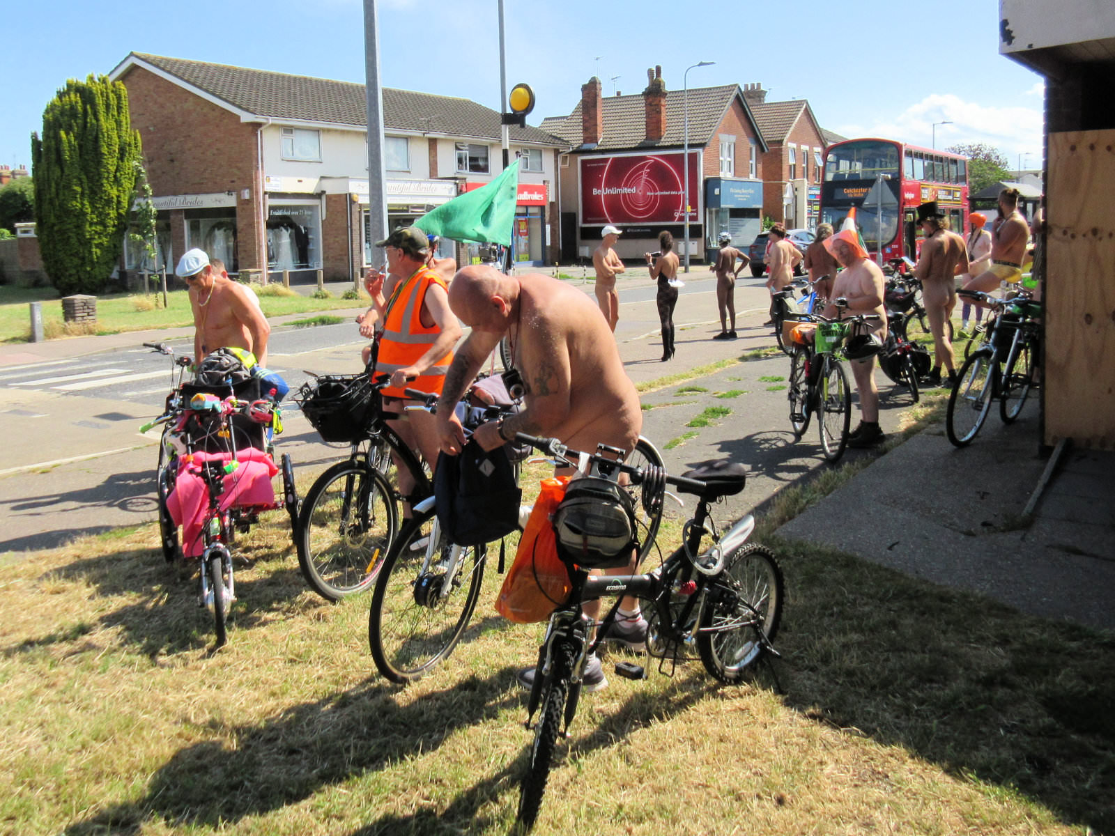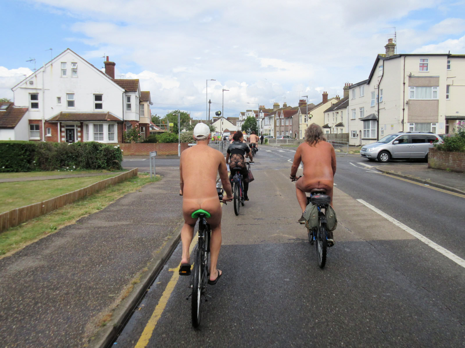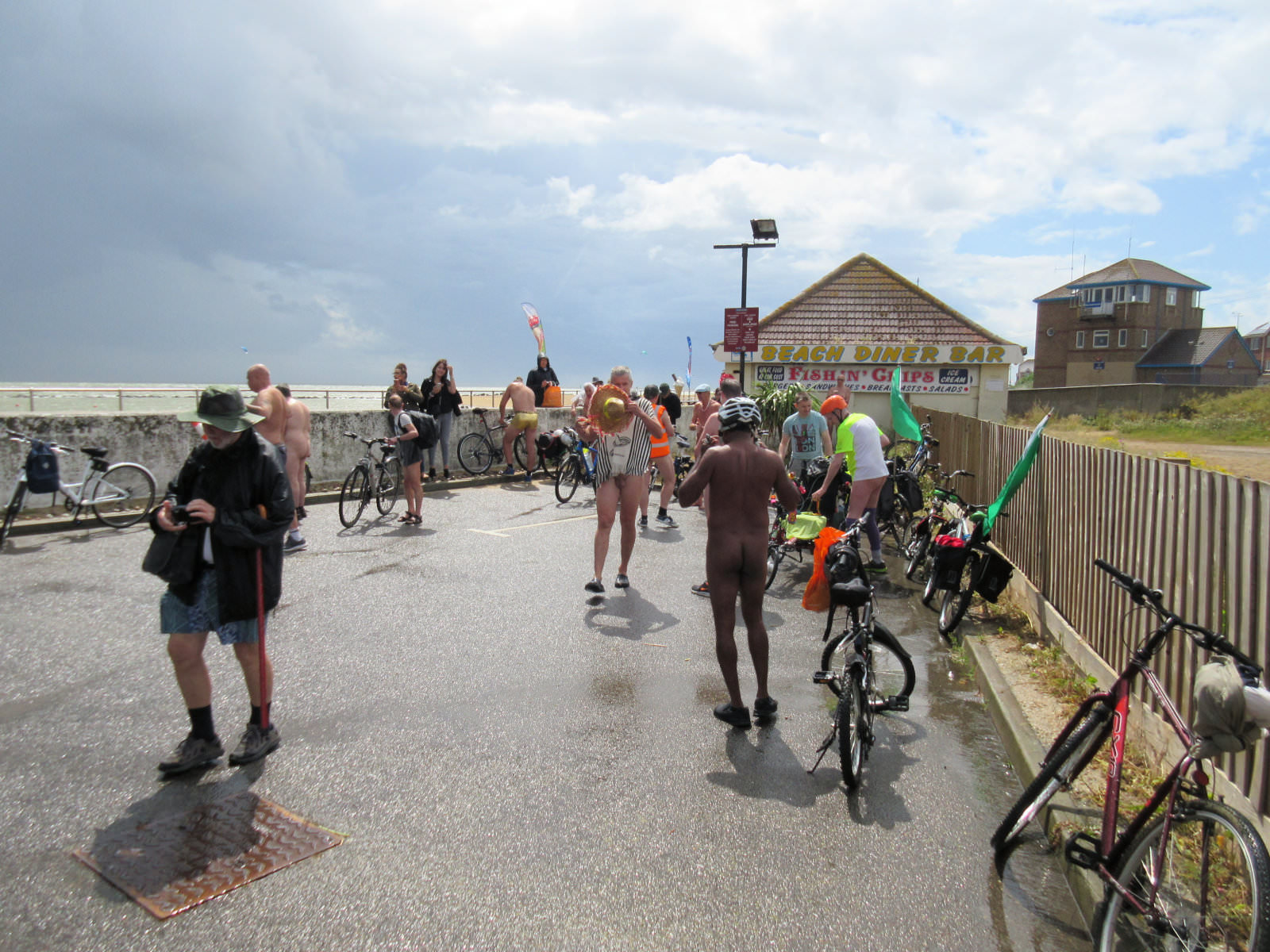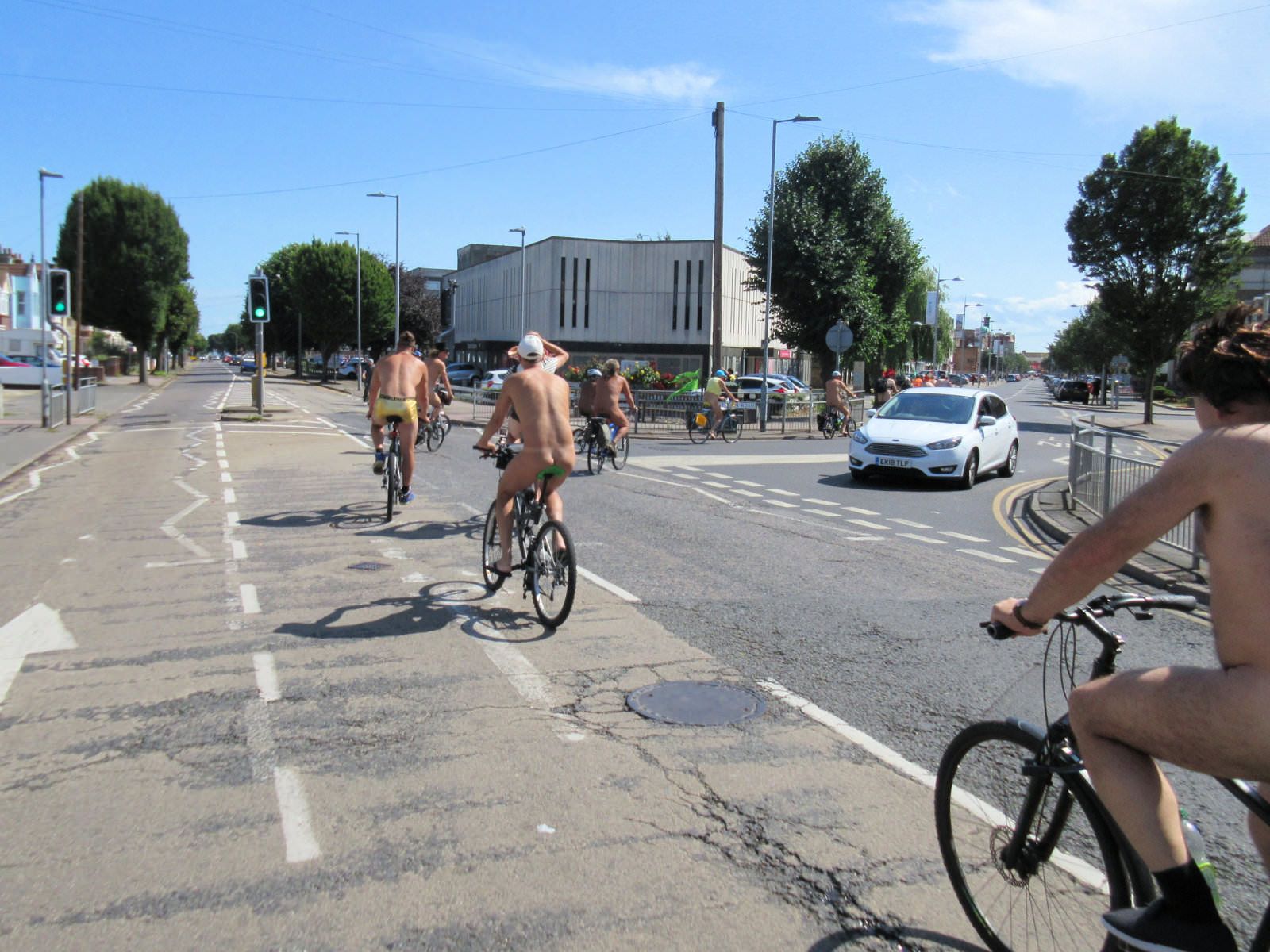 There was already a joyful party atmosphere in Clacton’s busy centre, so the sudden unexpected arrival of naked people on bicycles only added to the carnival. All around us cheers, phone cameras and beer glasses were raised in approval. We might have seemed unimaginably weird but we put smiles on faces, and maybe that’s enough.