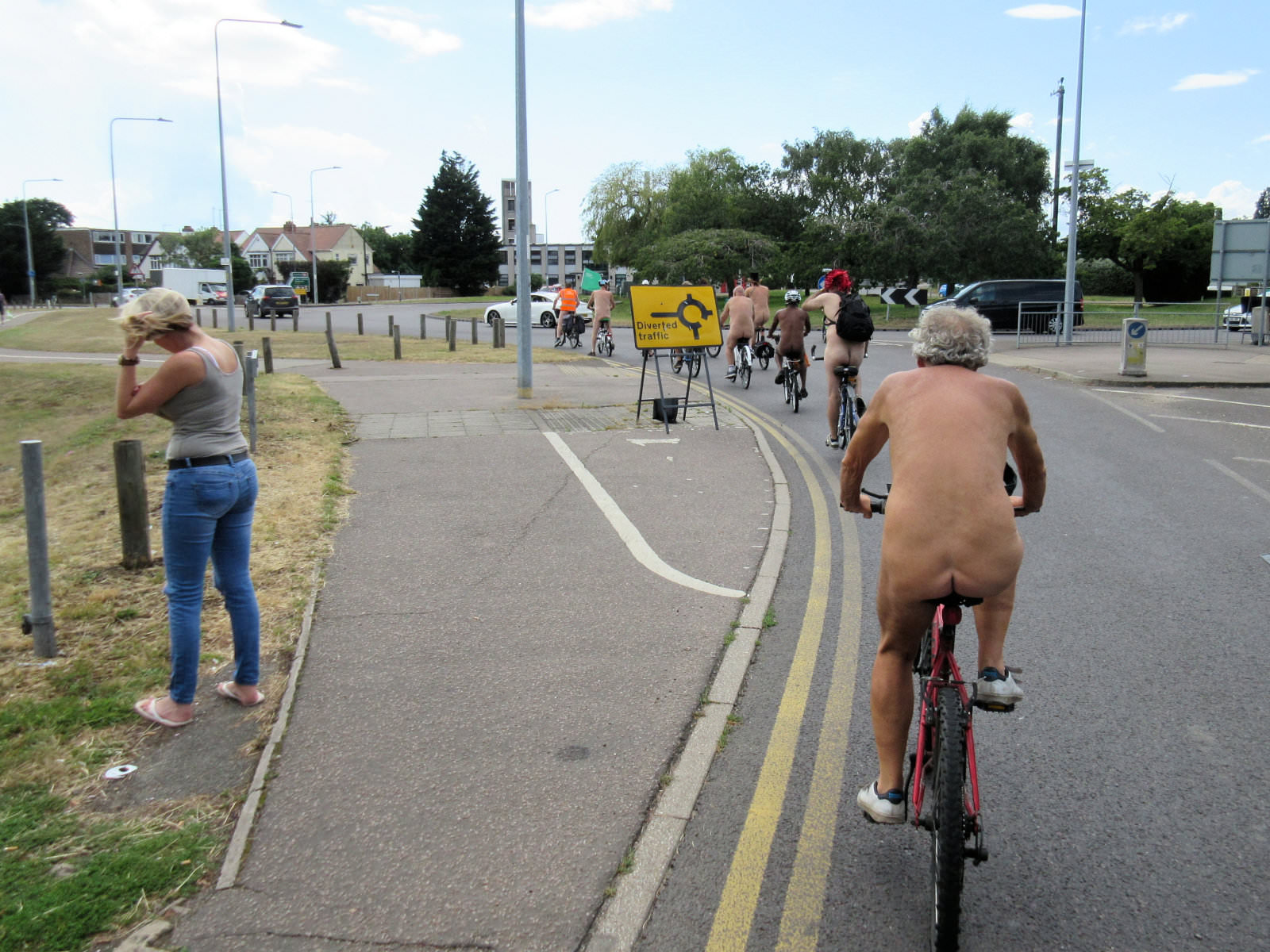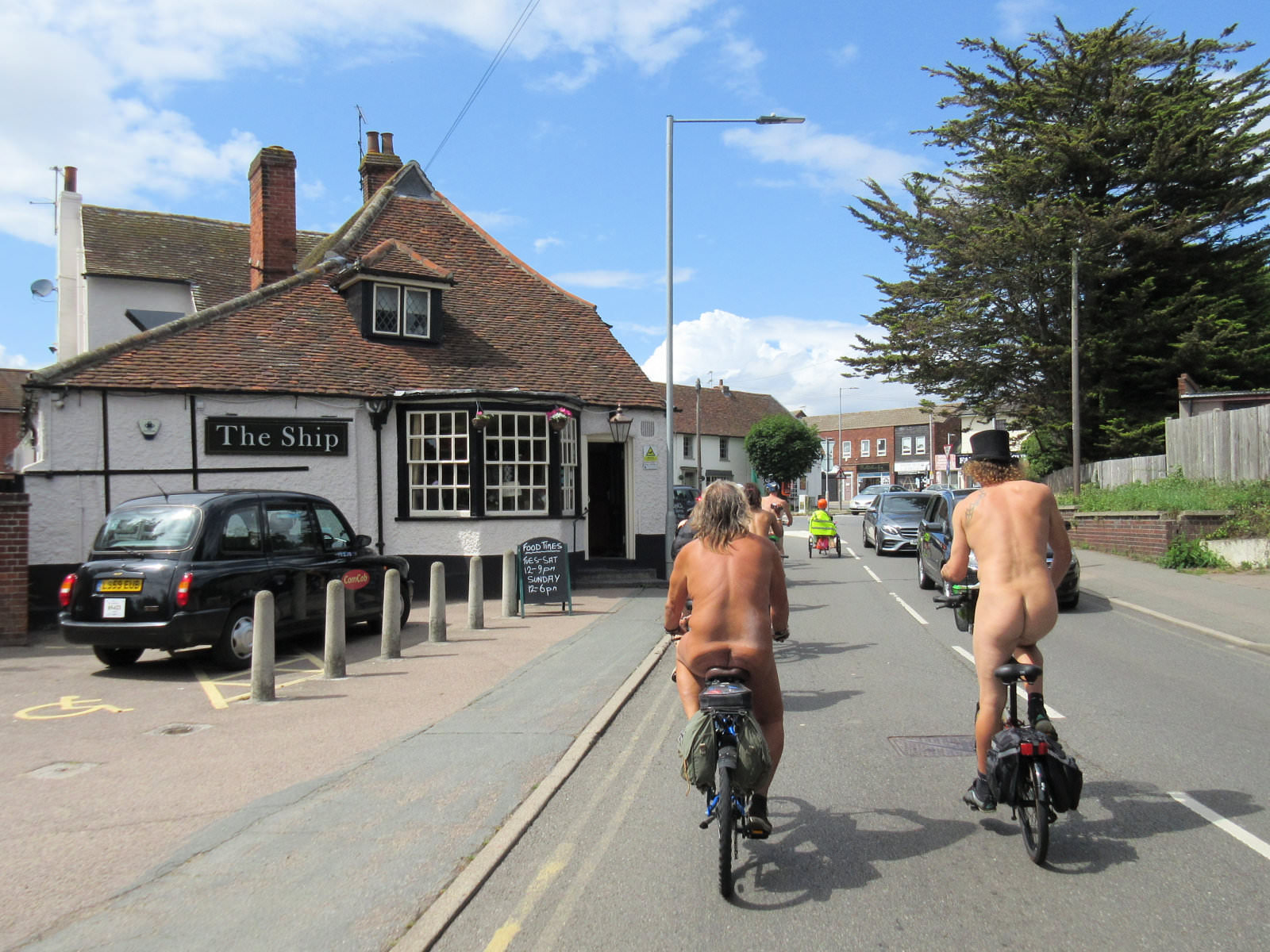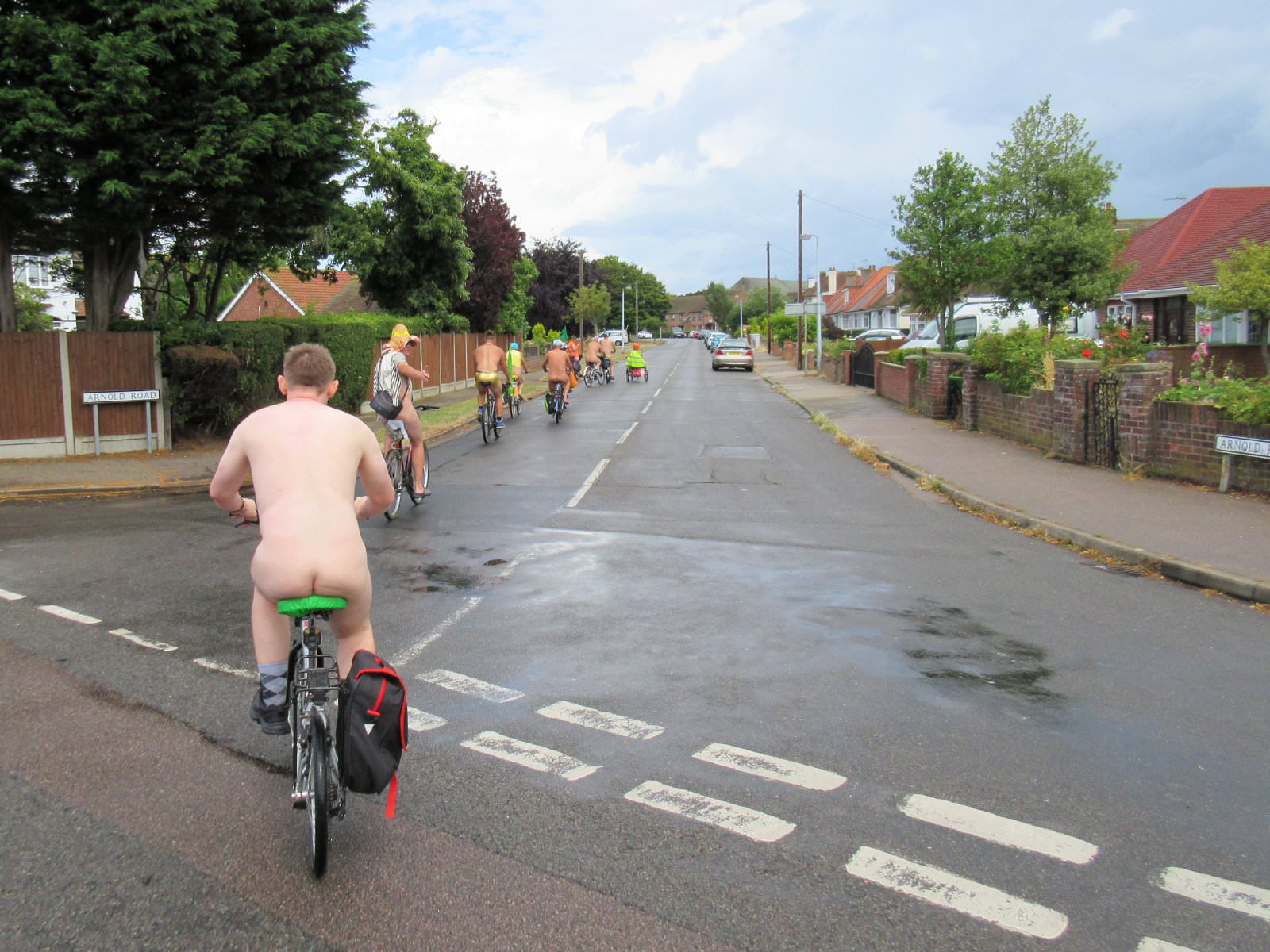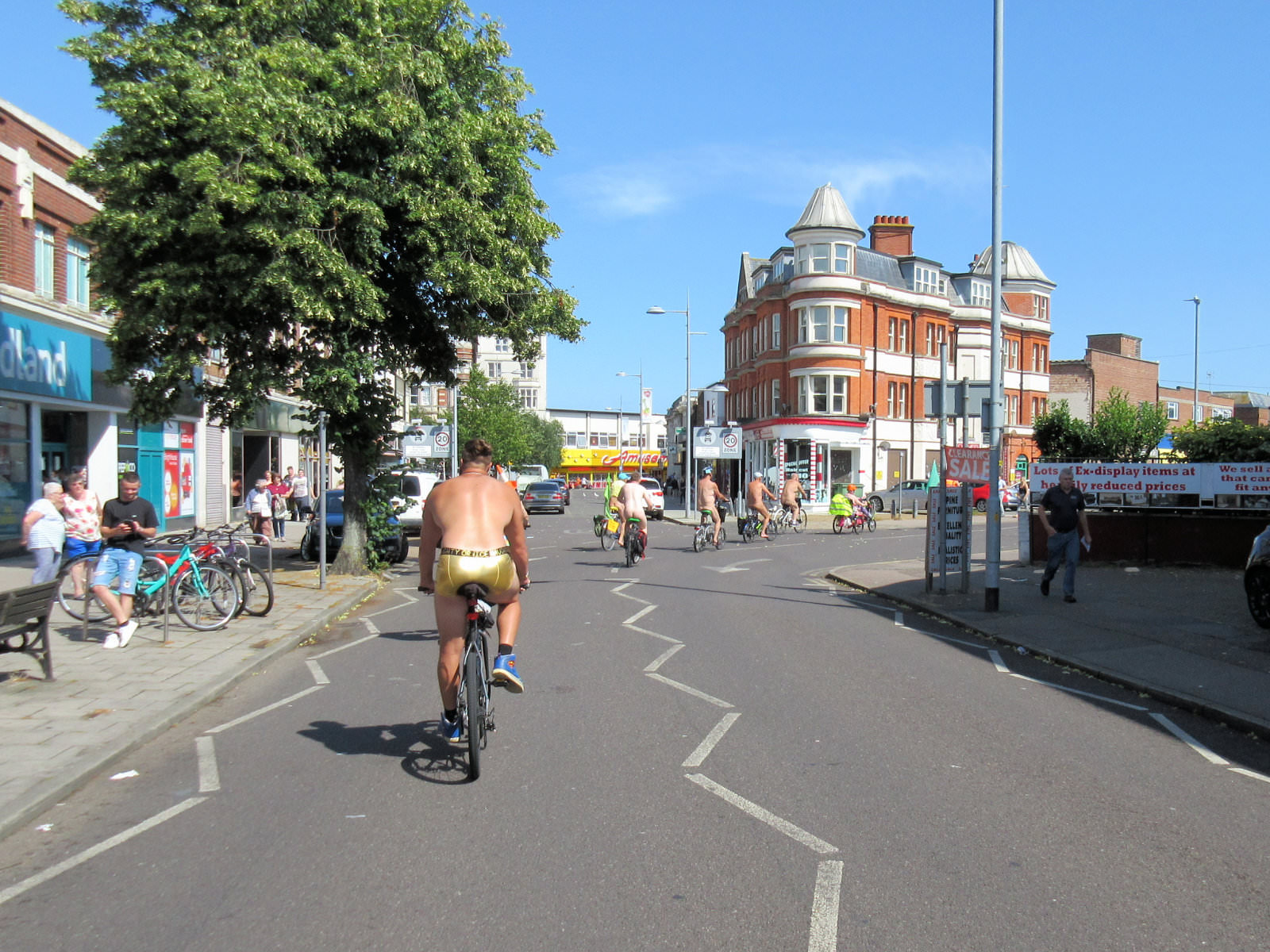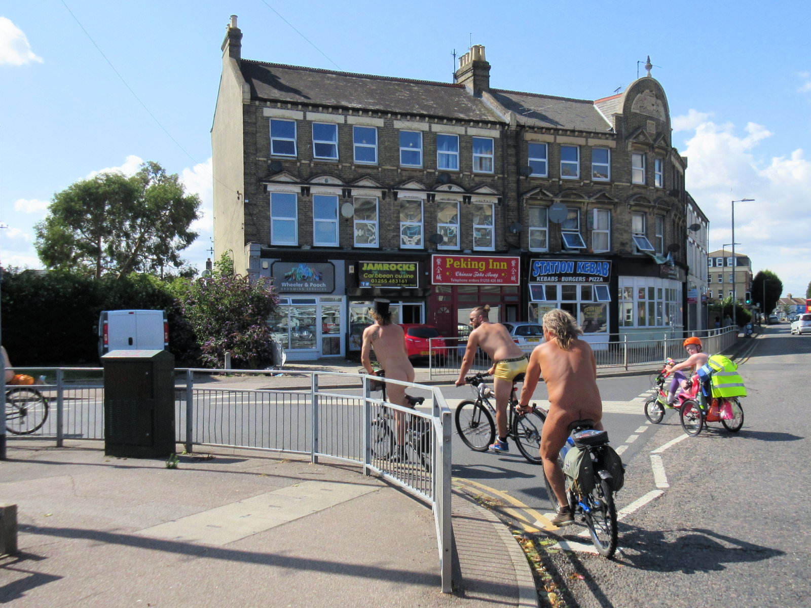 There was already a joyful party atmosphere in Clacton’s busy centre, so the sudden unexpected arrival of naked people on bicycles only added to the carnival. All around us cheers, phone cameras and beer glasses were raised in approval. We might have seemed unimaginably weird but we put smiles on faces, and maybe that’s enough.
