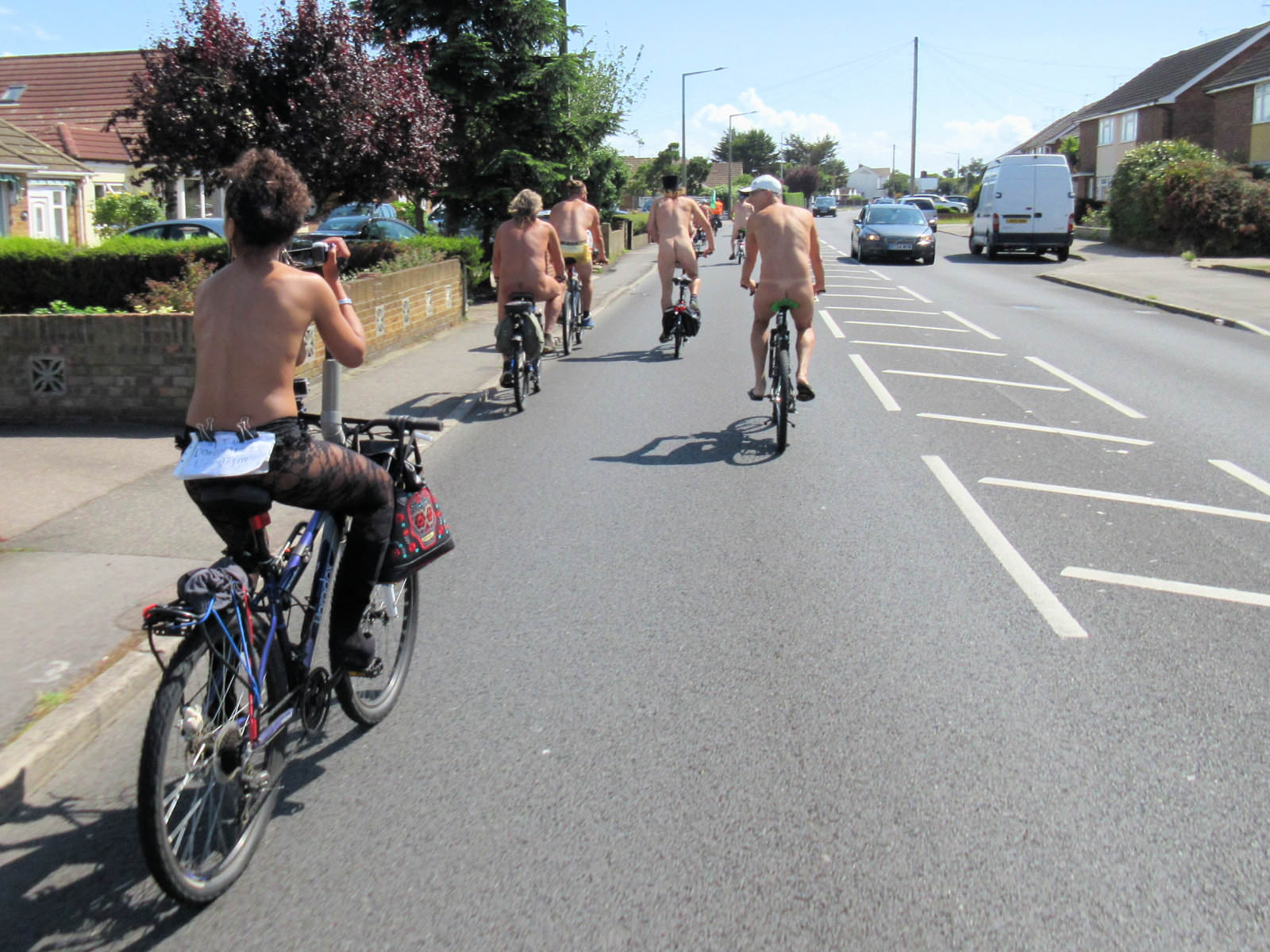 What is it about the naked human body that some people simply can’t deal with? We were participating in a recognised protest ride – one of many around the world – with police permission. We did not wish to offend, only to be noticed and raise awareness. The irony of vulnerable cyclists being attacked from a car, however, was not lost…