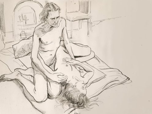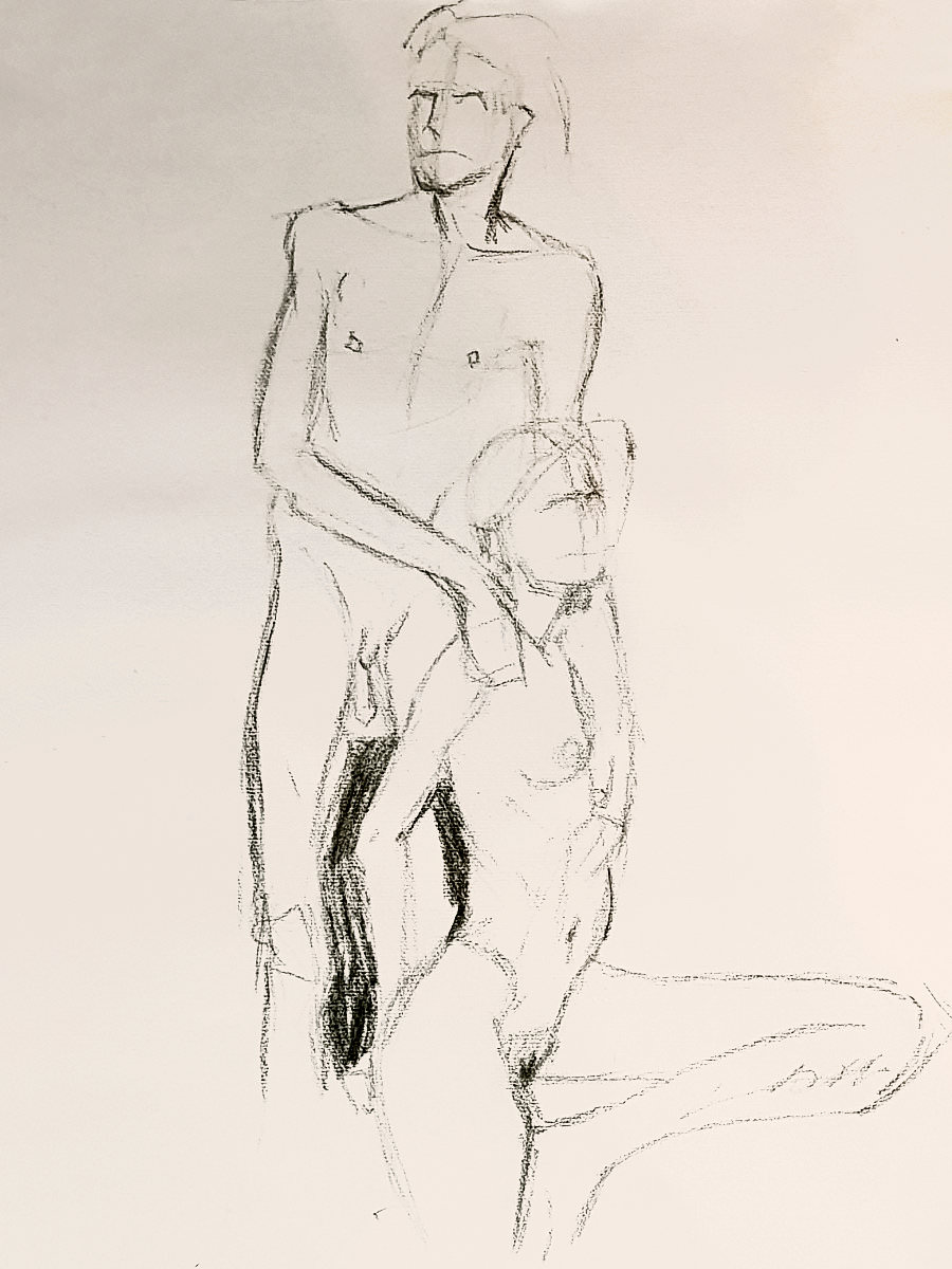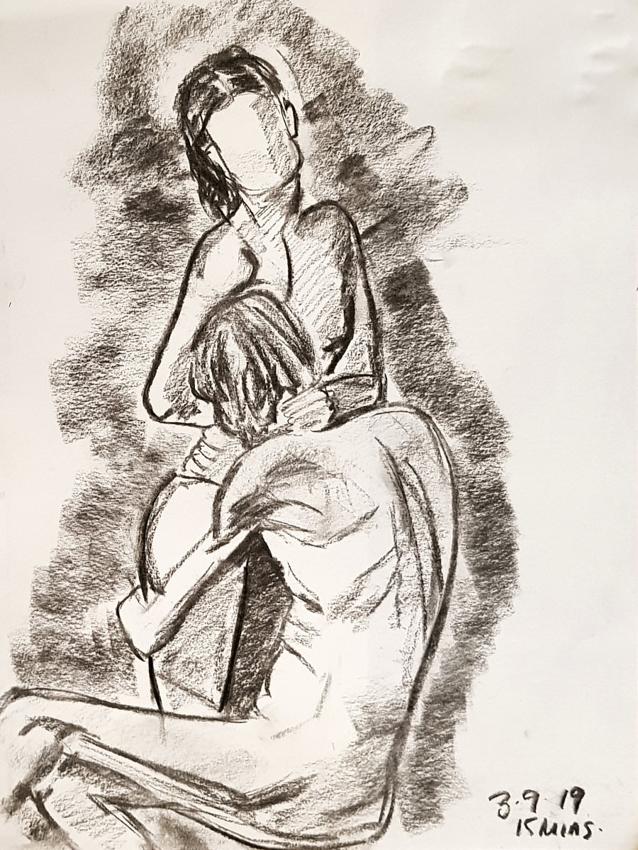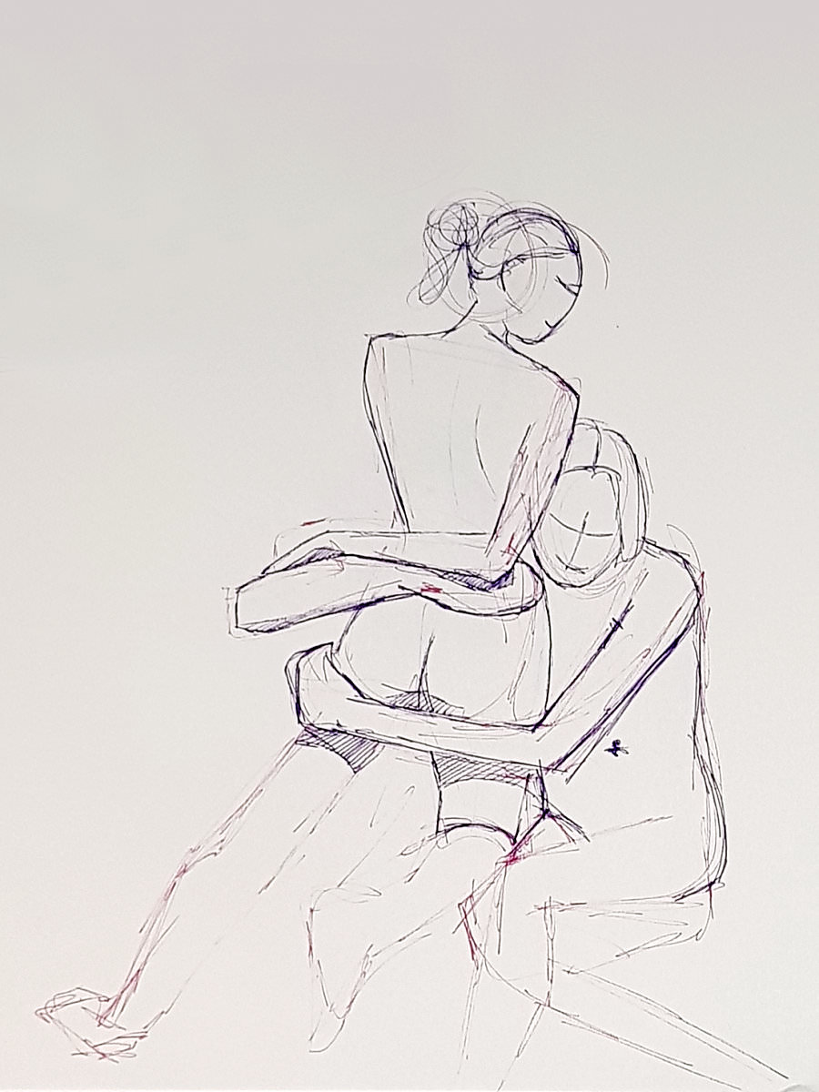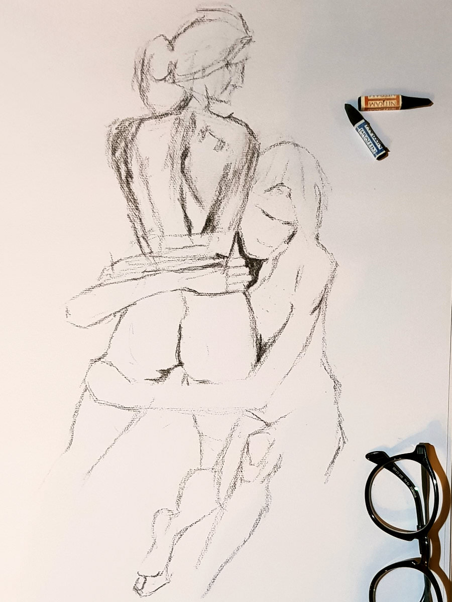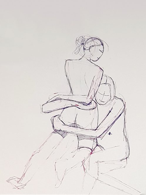 I cannot recall when I last forgot to remove my glasses – maybe this was the first time ever. It’s symptomatic of a duo modelling pitfall, however; mindfulness of one’s partner but not of oneself. I was surprised no-one said anything it. Perhaps like me, the artists were too engrossed in the poses.