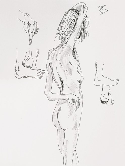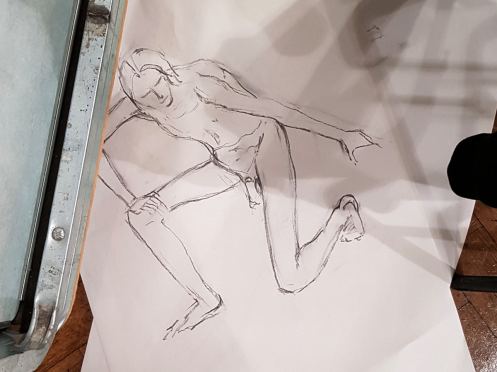 I’m always concerned to come up with a few poses that are either wholly original or at least appreciable variations when I return to venues that have booked me many times in the past – artists are apt to grumble about models who keep repeating poses. Here, however, I was new to almost everyone so I relaxed into a couple of old favourites.