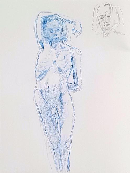 Horrendous railway disruption magically worked in my favour so I got to Hayes earlier than expected. This meant I found myself loitering outside the church hall with crowds of parents waiting to collect their kids from whichever event preceded the life drawing. It seemed to take ages for them to disperse so I suspect we started a little late.
