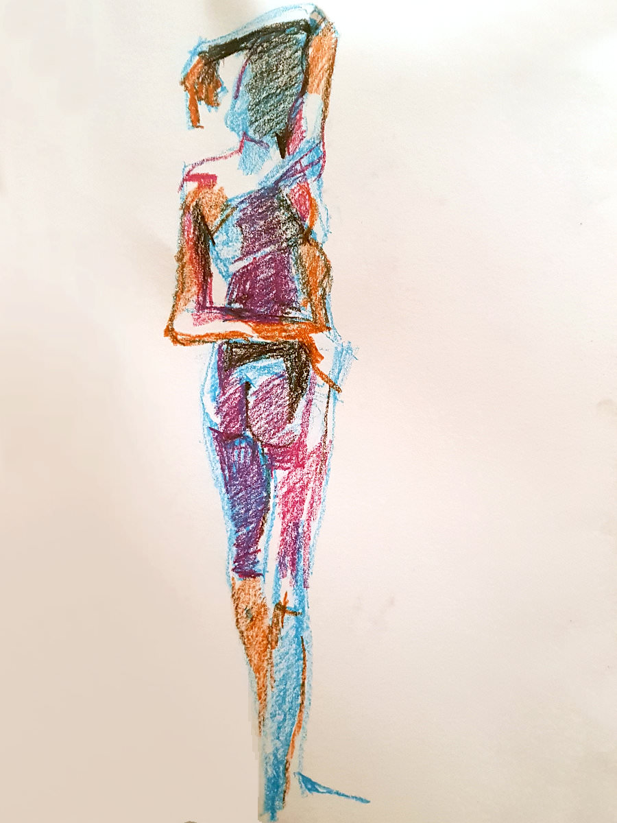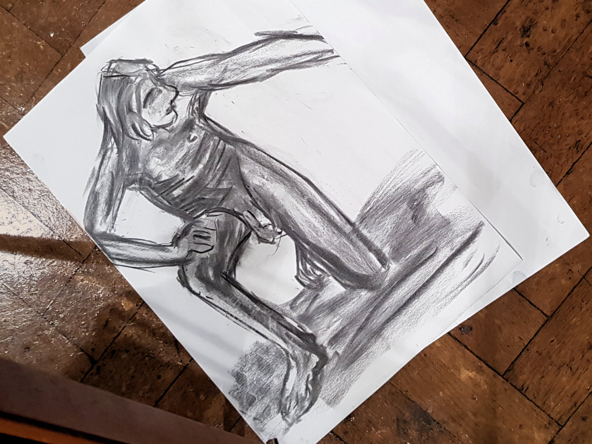 West Wickham Arts Association holds life drawing sessions at Hayes Free Church way down in south-east London, getting towards Kent. It’s a long way from my regular territory, but I warmed to an invitation from one of the association’s members who had seen me modelling several times at Mall Galleries, so decided to take the plunge.