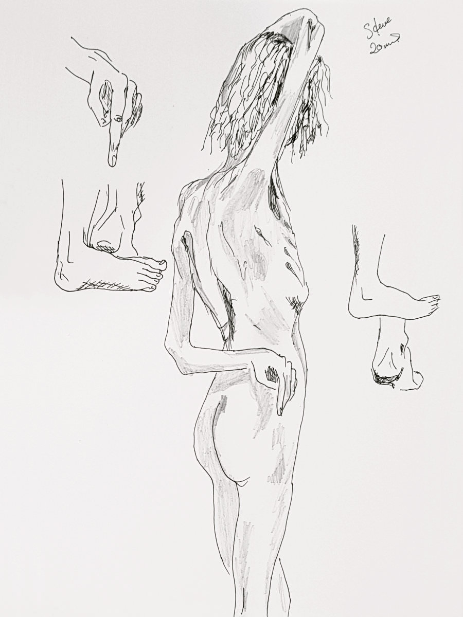 Horrendous railway disruption magically worked in my favour so I got to Hayes earlier than expected. This meant I found myself loitering outside the church hall with crowds of parents waiting to collect their kids from whichever event preceded the life drawing. It seemed to take ages for them to disperse so I suspect we started a little late.