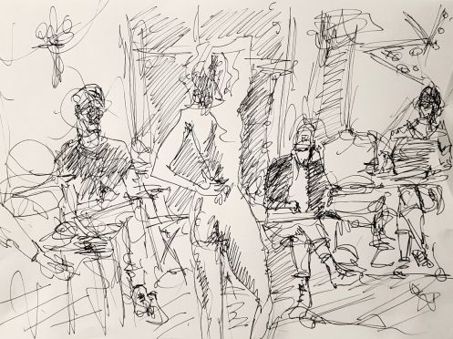 A fine session and, as ever, enjoyable as much for its social aspect as the creativity. I stayed for a drink and lively banter with organiser Catherine, artist Franco, latecomer Drew, plus many others. I never tire of returning; never take for granted being invited.