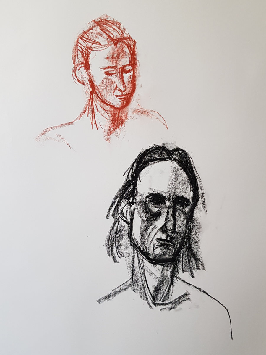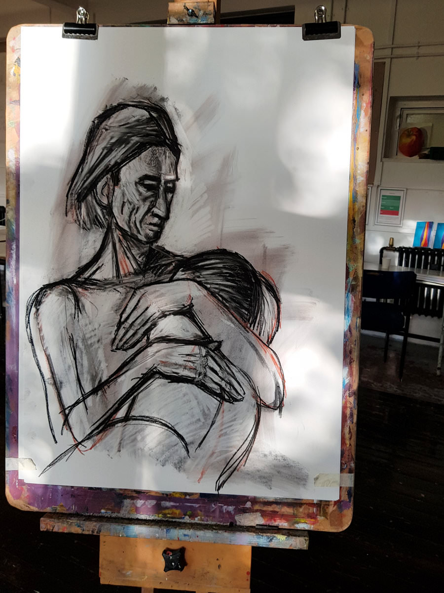 First time life modelling at any adult college – in this case Brockley Adult Education Centre – there’s only one thing truly certain: paperwork. No doubt it’s required by law rather than something they do for fun, but it meant that when Esther and I arrived for this duo session we needed our passports, bank details, National Insurance numbers and had to complete two sets of forms. Only then could we navigate to the art room…