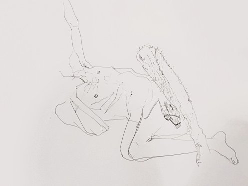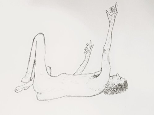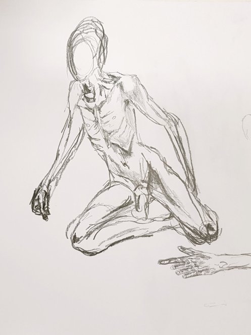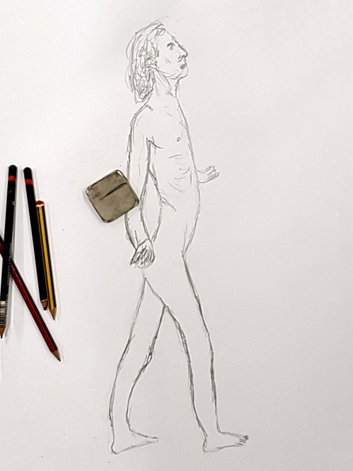 In the session itself, there was no need for long-standing as all poses were less than half an hour in length. We began with four 1-minute poses, two 5-minute poses, then 10-minutes, 15-minutes, and another 10-minute pose up to a break. We finished with poses of 20-minutes and 25-minutes. I’d felt comfortable throughout, albeit I was told at the end: “The longer the poses got, the more difficult you seemed to make them!”