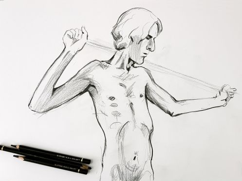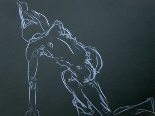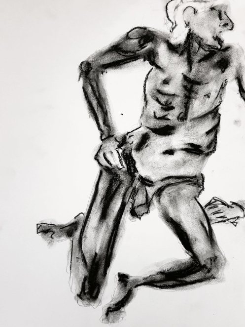 Vagaries of the Jubilee and Victoria line had slowed my progress – in an unexpected encounter, I’d almost knocked over Hesketh Hubbard Art Society president, Simon as I dashed between platforms – but we started on time with five 1-minute poses.