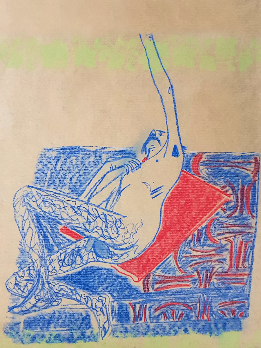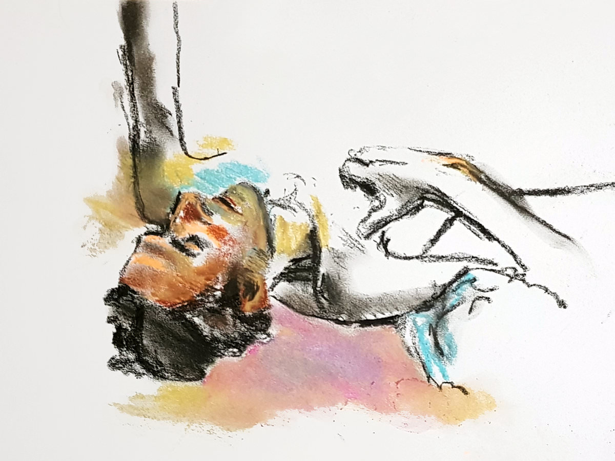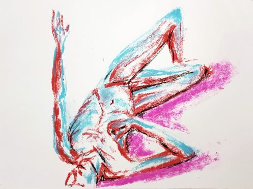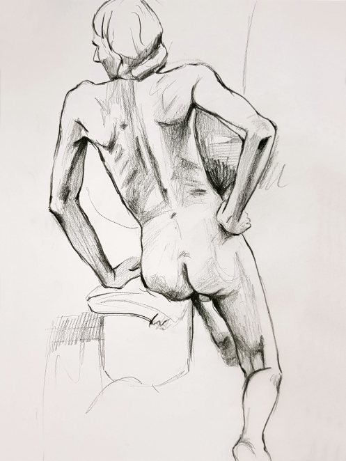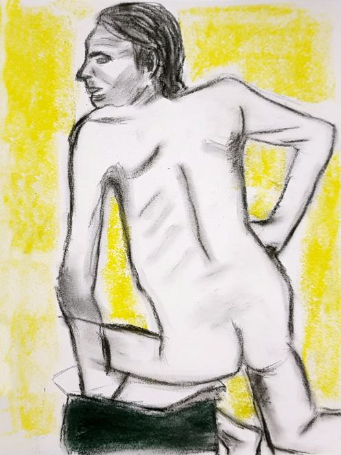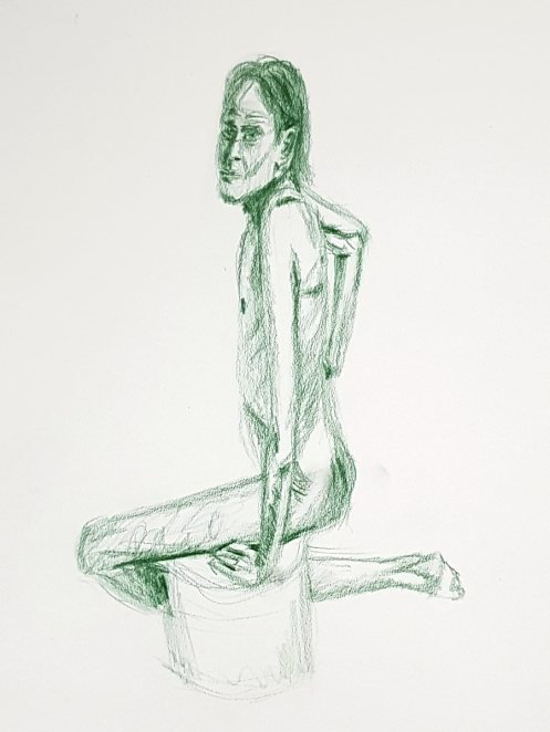 We resumed with a 25-minute pose that may have drifted closer to half-an-hour, but I was comfortable and all was well. A 20-minute pose concluded the session. So much colour, vigour and quality in the resultant artworks! A lovely evening all-round.