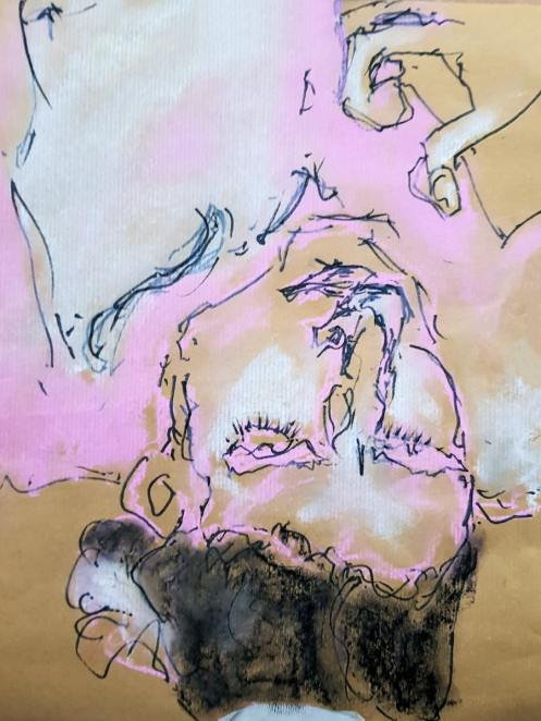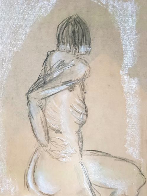 Two 5-minute poses and two 10-minute poses took us to a break. Karen served wine and various confections to her bumper turn-out of artists, and we had time for a good catch-up natter. There was lots of positivity in the house.