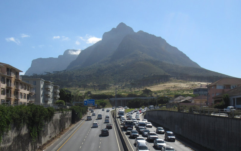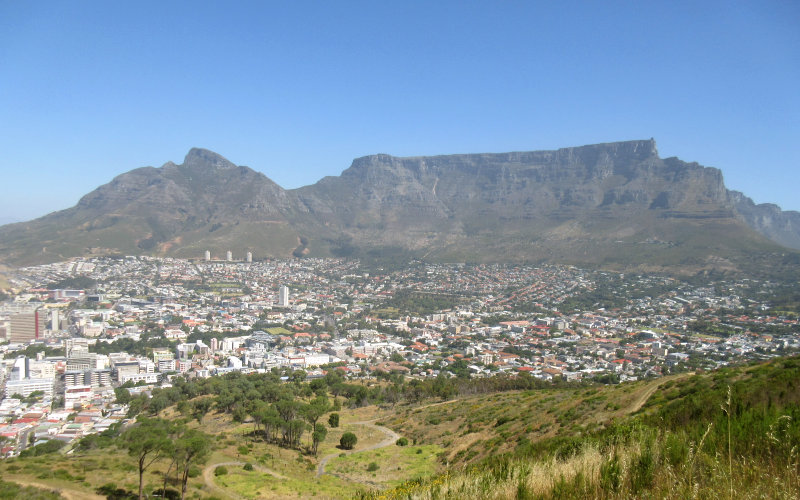 The familiar profile of Table Mountain looming over Cape Town, South Africa