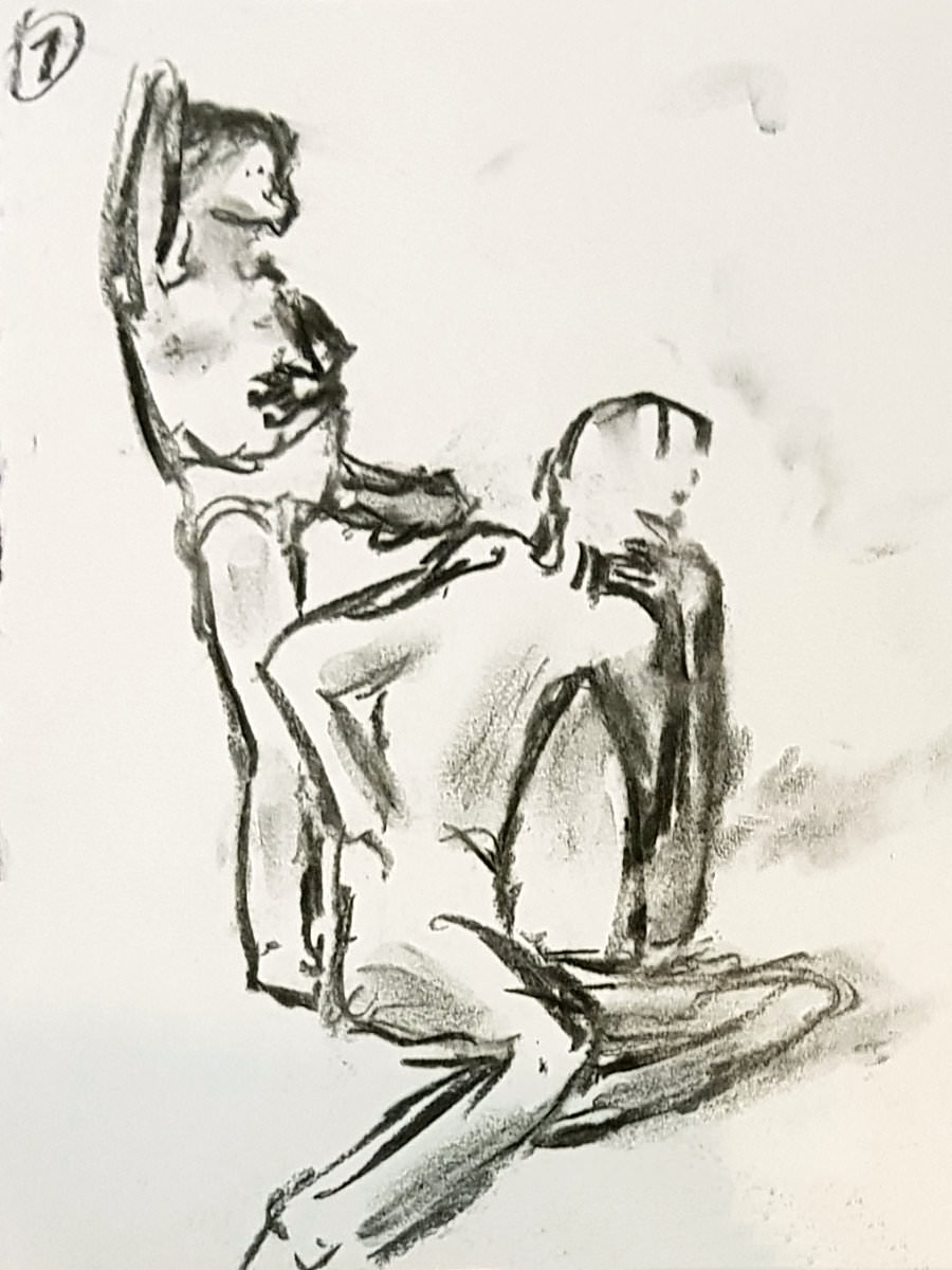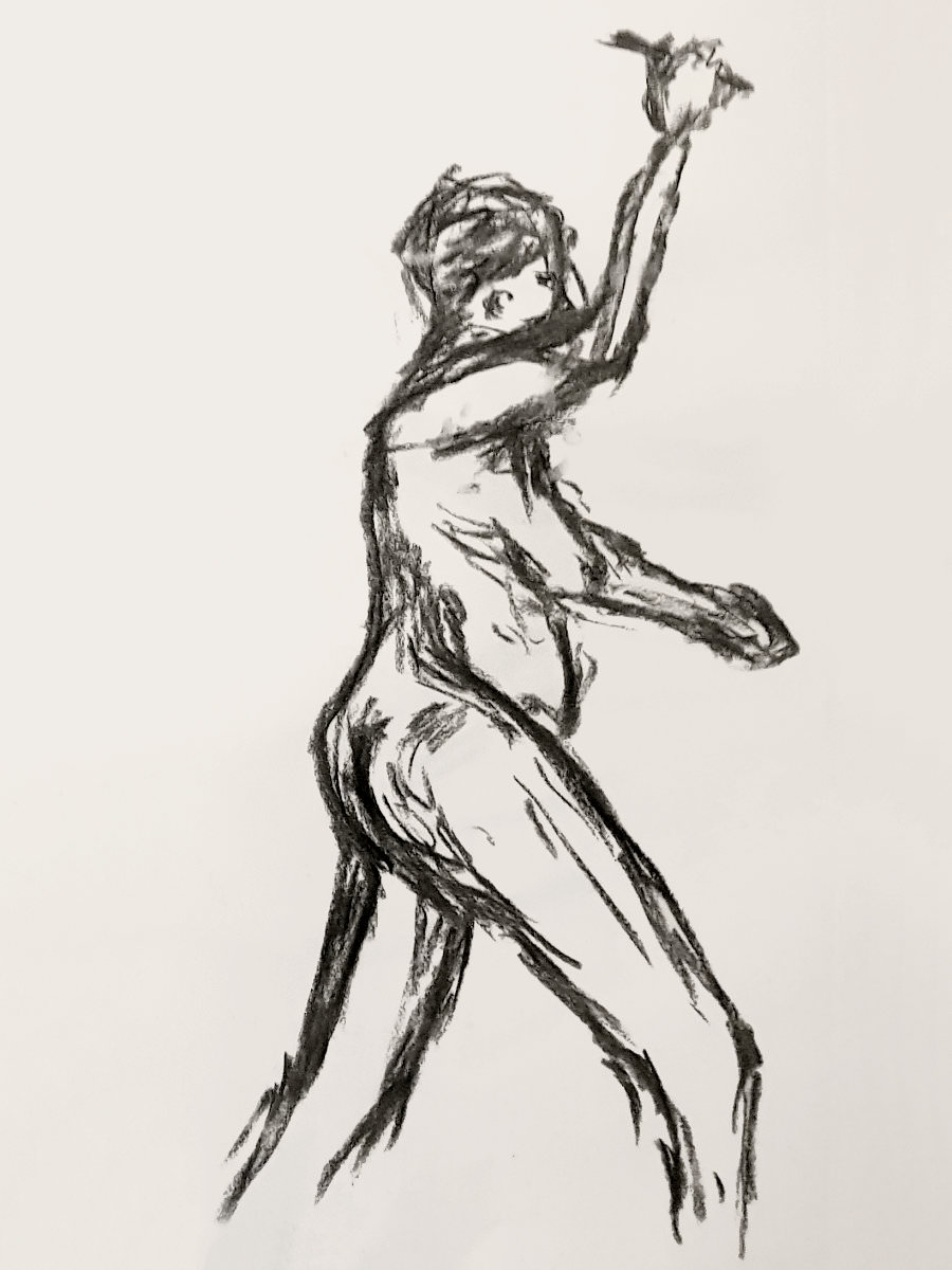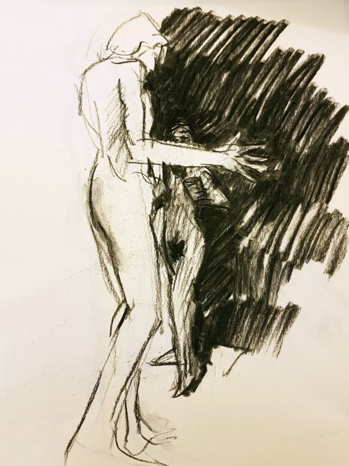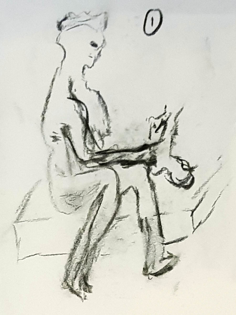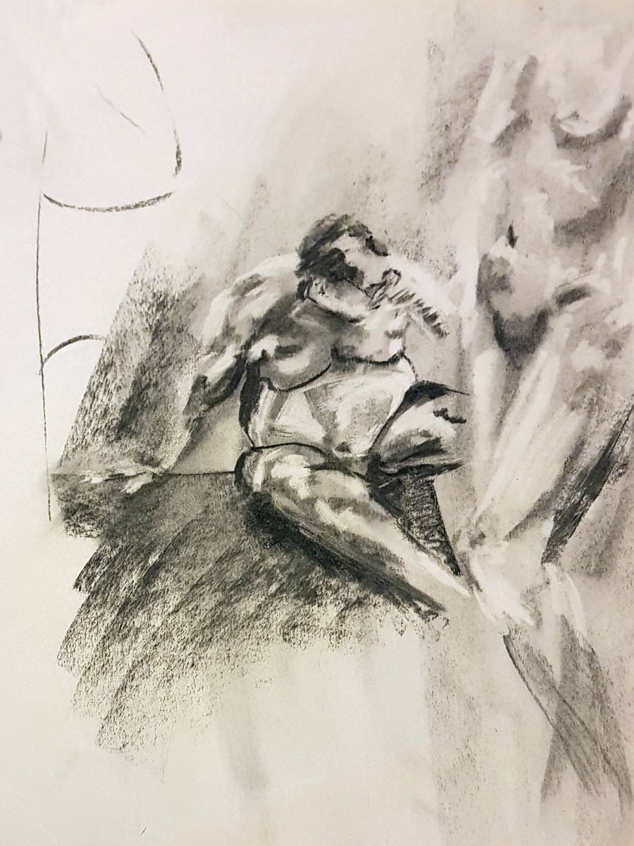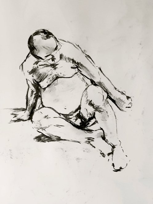 Certainly many of their artworks captured the energy we tried to convey. A few artists sketched elements of different poses onto a single sheet, thereby effectively creating news montages. Just as we models look for new ways of energising artists, so artists continue surprising us with the imagination and talent in their interpretations. It was a grand way to finish life modelling in 2019. Let’s hope 2020 is as much fun.
