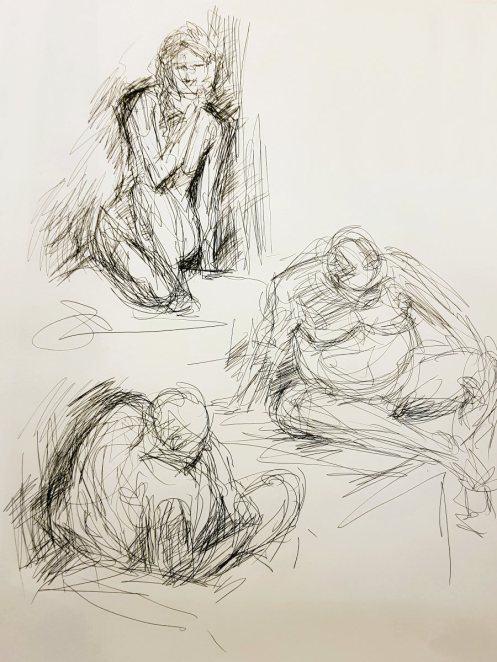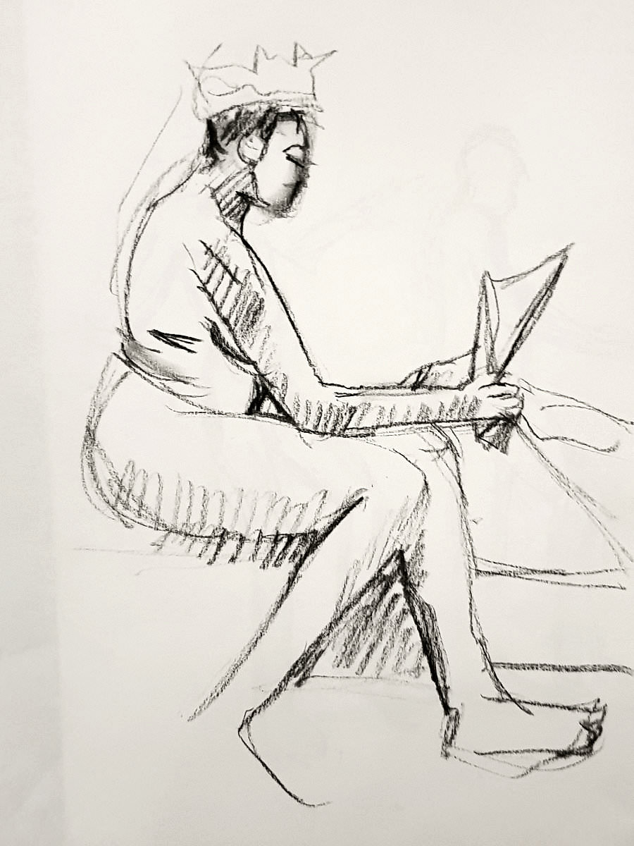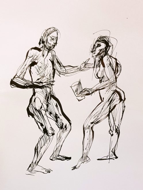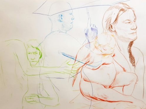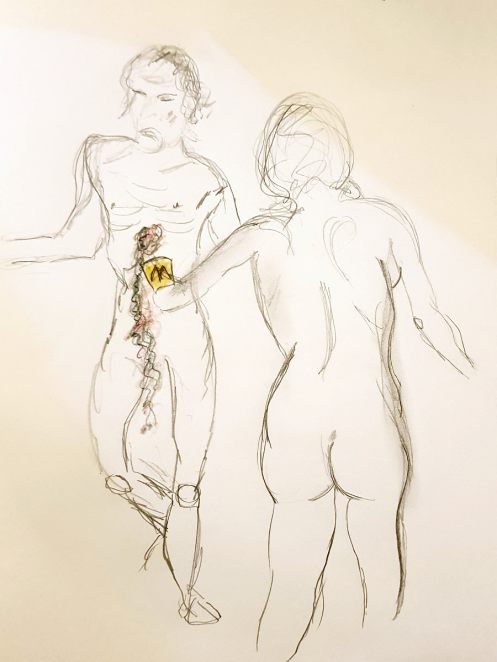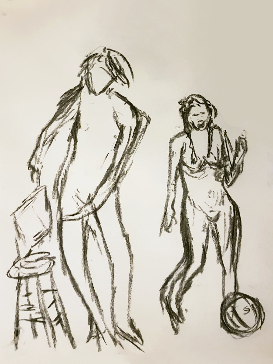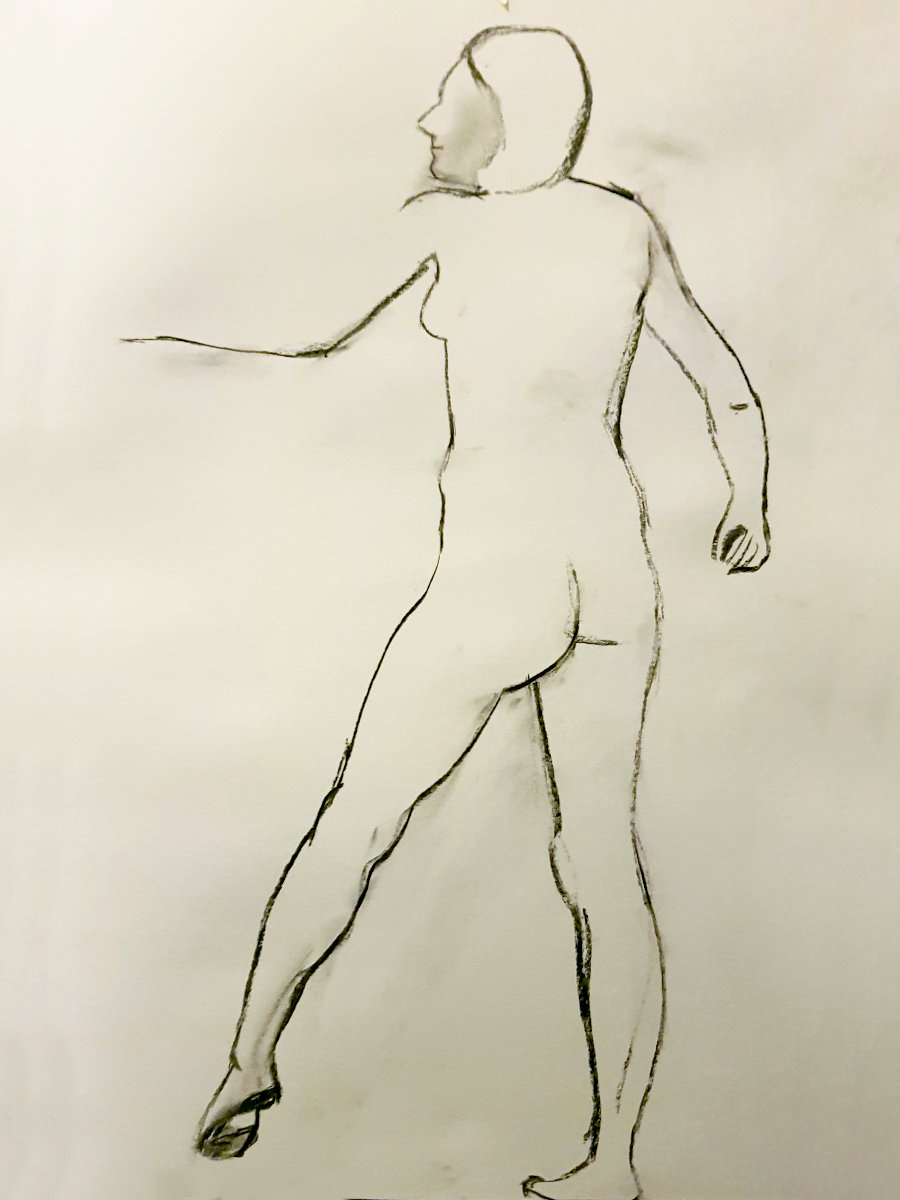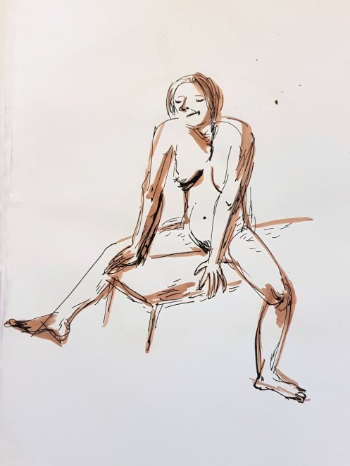 Certainly many of their artworks captured the energy we tried to convey. A few artists sketched elements of different poses onto a single sheet, thereby effectively creating news montages. Just as we models look for new ways of energising artists, so artists continue surprising us with the imagination and talent in their interpretations. It was a grand way to finish life modelling in 2019. Let’s hope 2020 is as much fun.