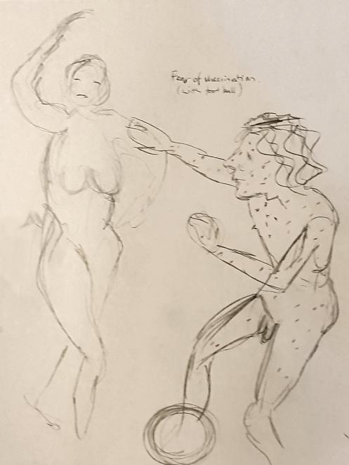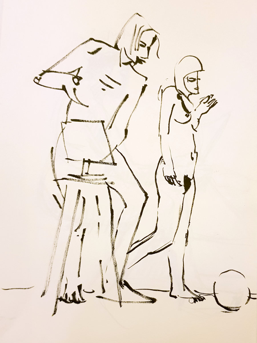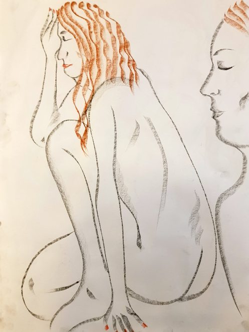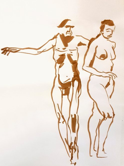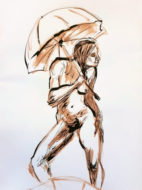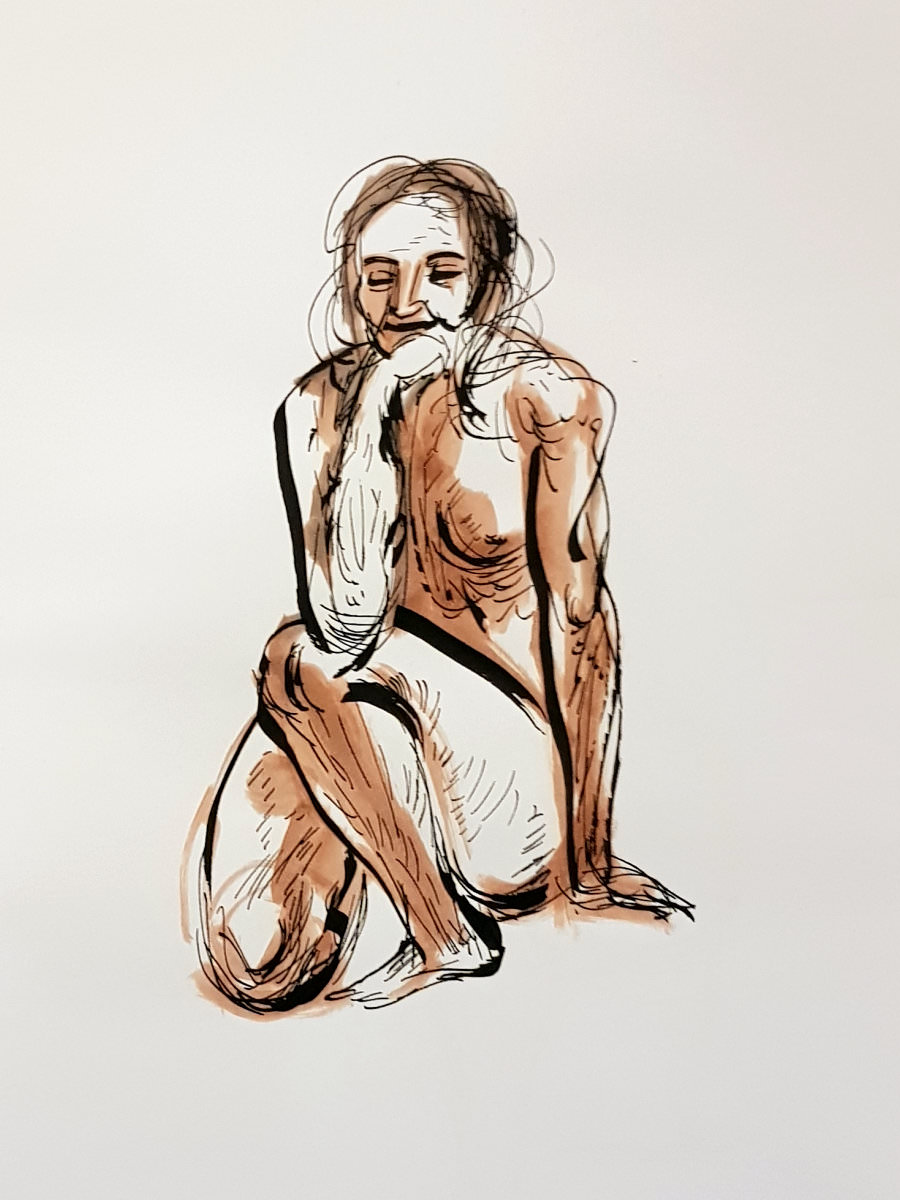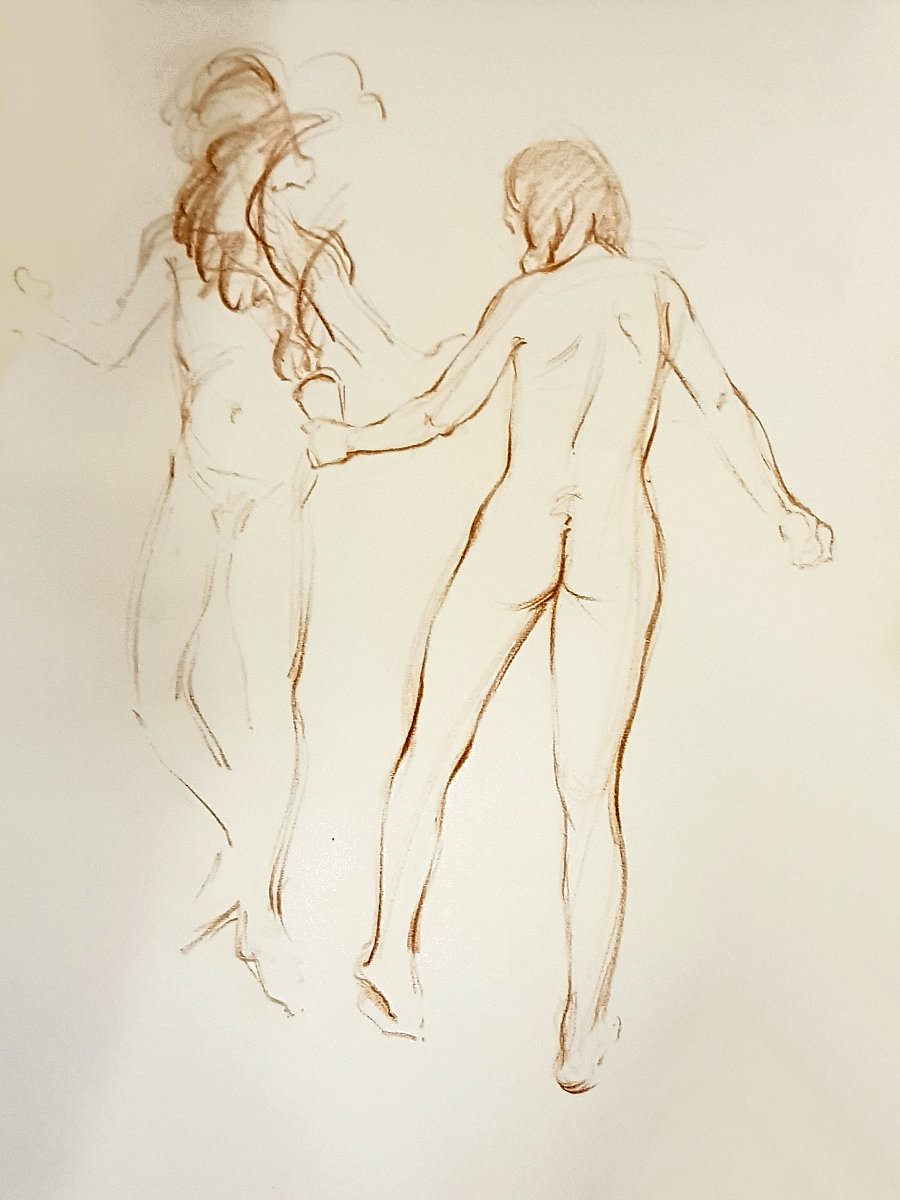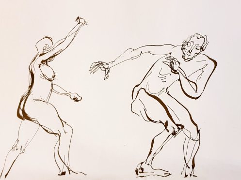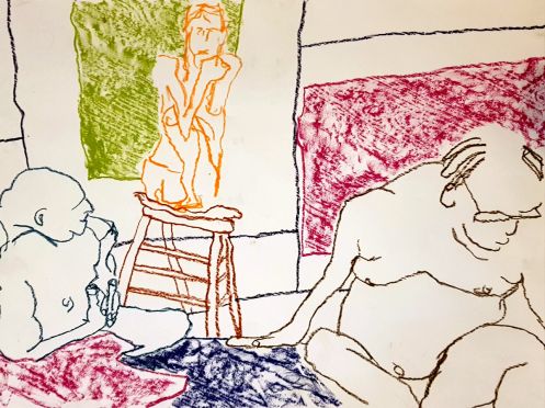 Certainly many of their artworks captured the energy we tried to convey. A few artists sketched elements of different poses onto a single sheet, thereby effectively creating news montages. Just as we models look for new ways of energising artists, so artists continue surprising us with the imagination and talent in their interpretations. It was a grand way to finish life modelling in 2019. Let’s hope 2020 is as much fun.