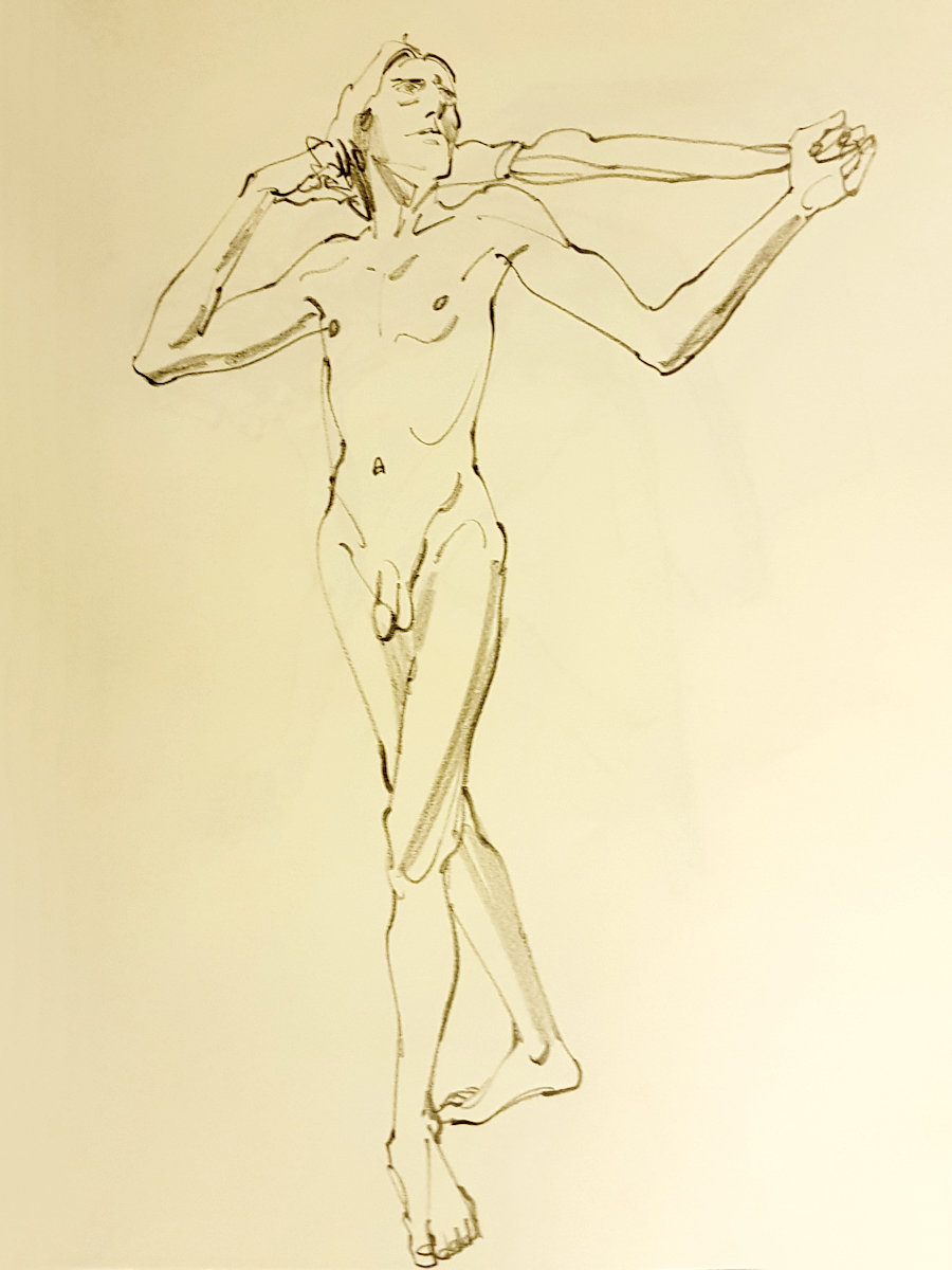 Having first posed for Blue Zoo Animation Studio in a clothed session two weeks before Christmas, I returned to them two weeks after Christmas to pose nude. As per my previous visit, the two hours would be devoted entirely to quick-fire dynamic work, only even quicker this time.