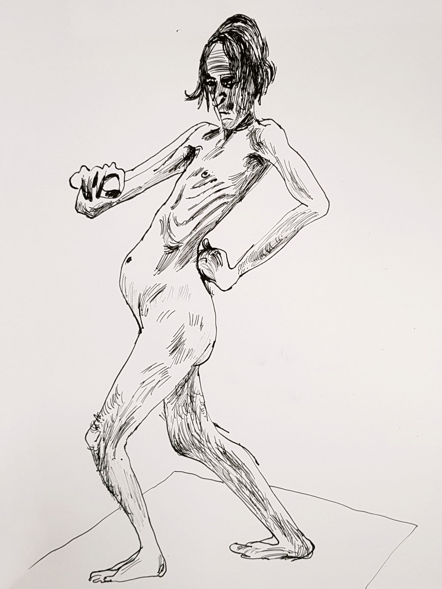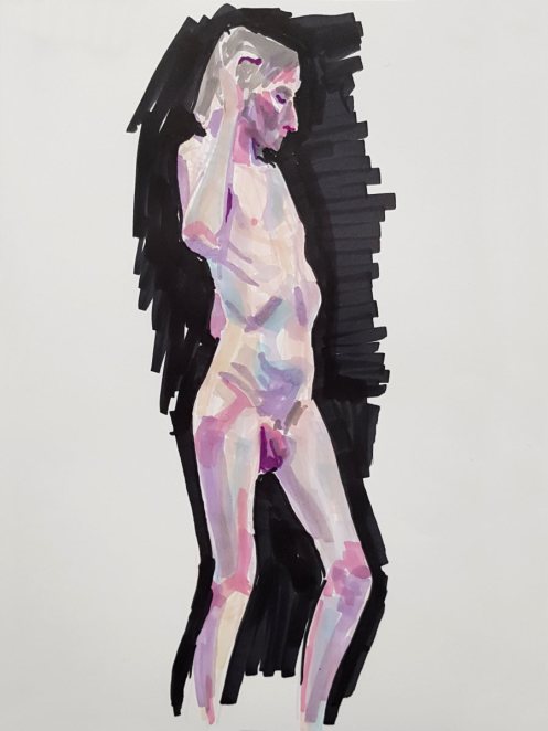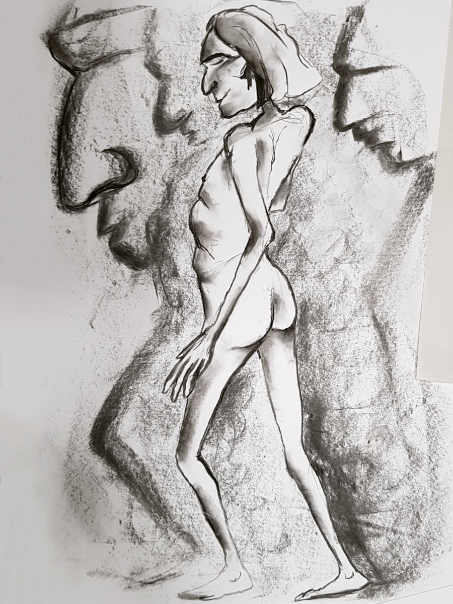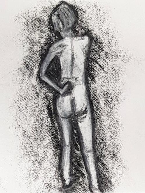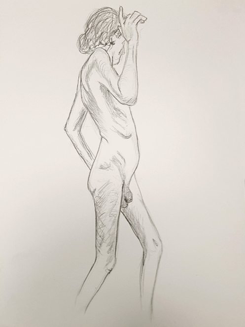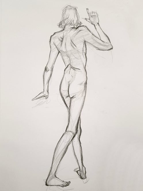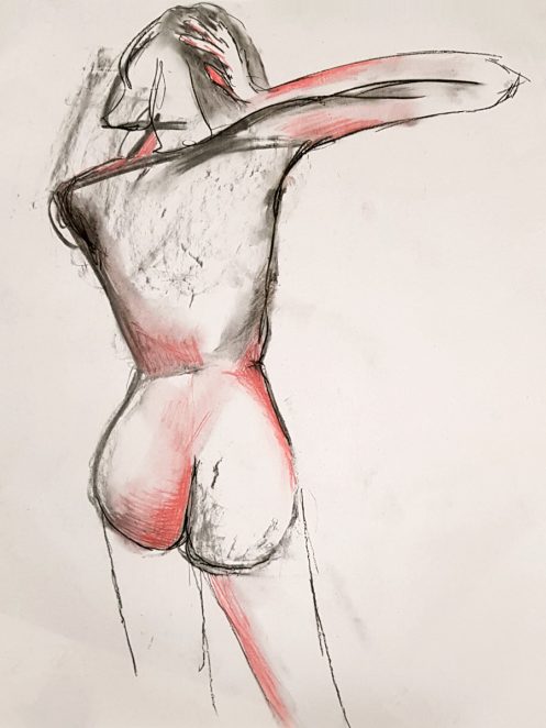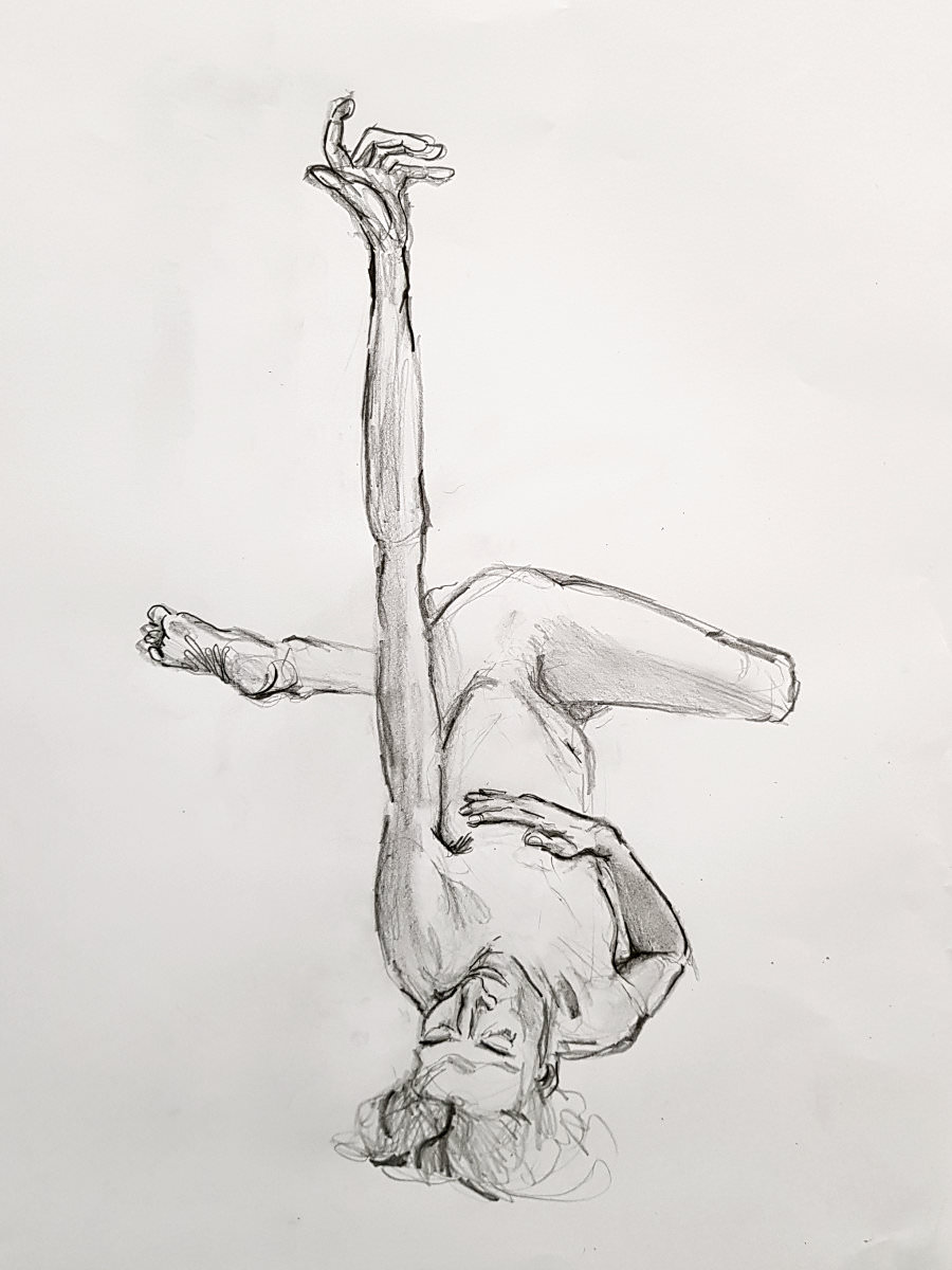 An hour earlier I’d started the session with a 15-minute standing pose, during which a couple of late arrivals filled the last seats and made it another full house. We followed with five 1-minute poses, then poses of 5 minutes, 10 minutes and 20 minutes, taking us to the interval. I suspected the 20 minutes might have drifted closer to half an hour, but I was comfortable and quite happy laying down in front of two heaters.
