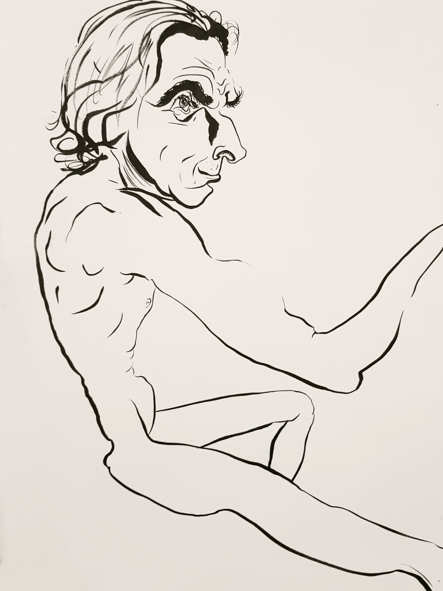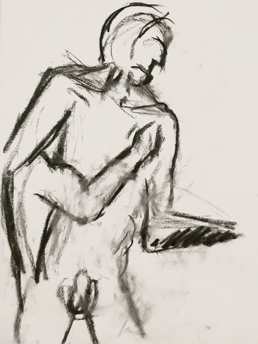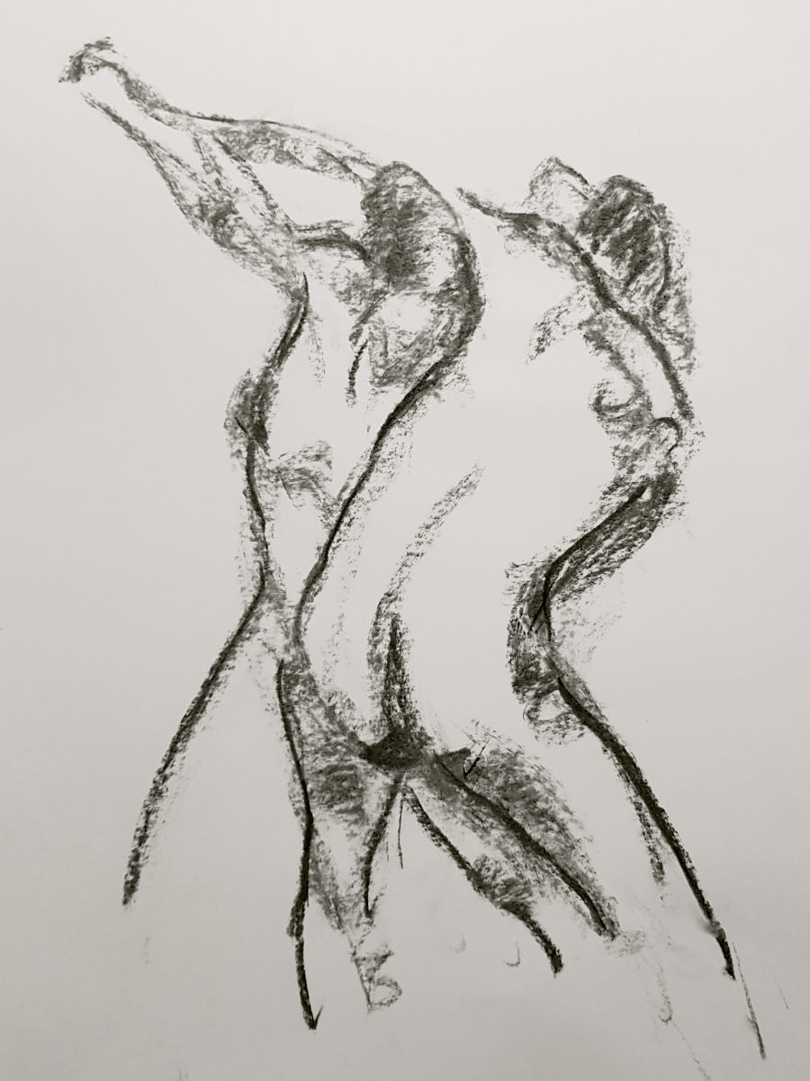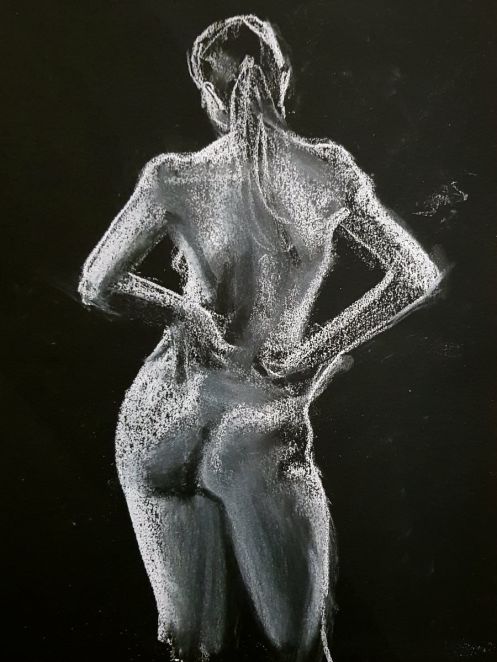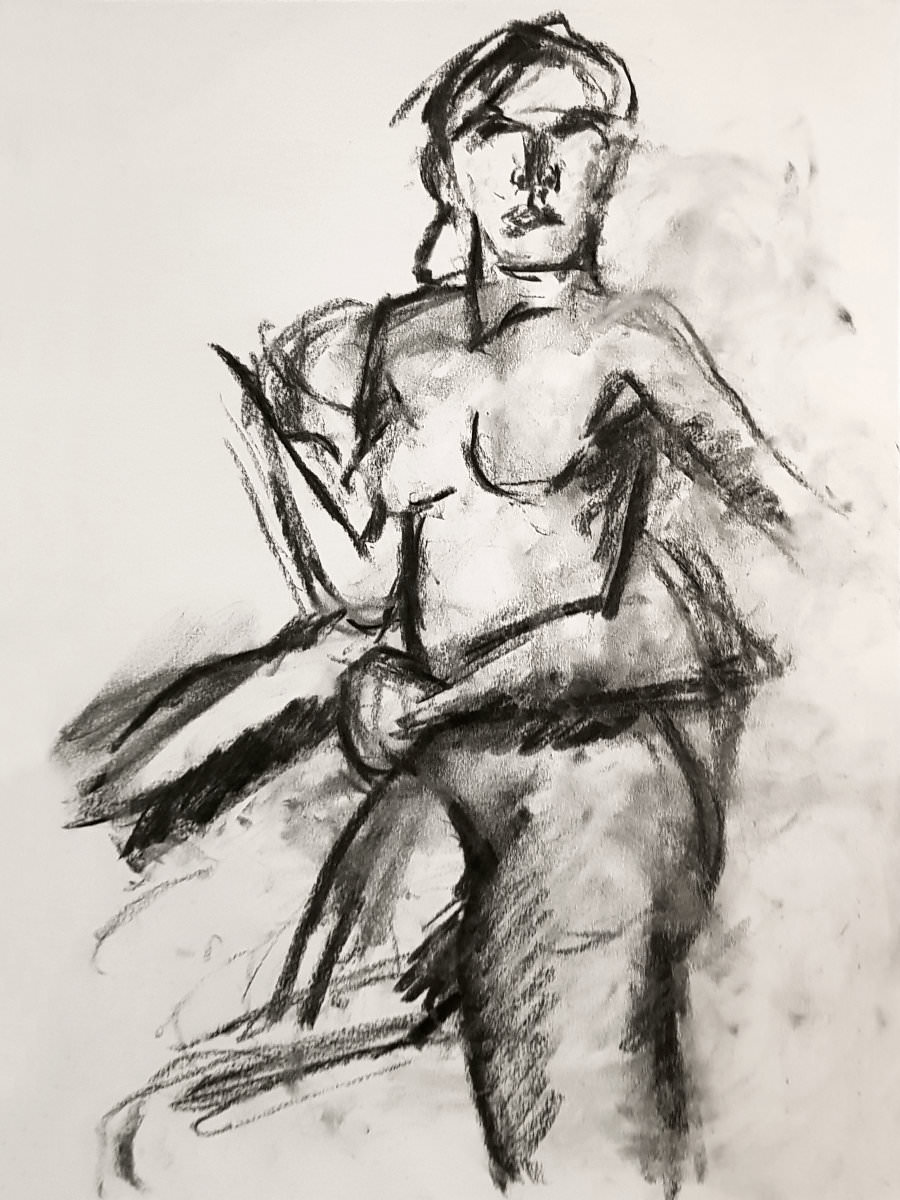 I first modelled here on 23 April 2015, not long after the group began. This five-year anniversary special was my twenty-third visit as the model, while on other occasions I’ve come simply to draw and stay for a drink afterwards. Every time is a joy, and it is clear that many artists feel the same way. Bravo, Catherine, and thank you.