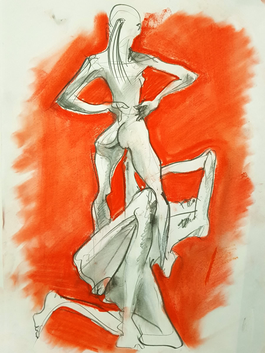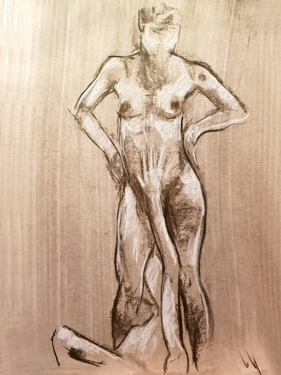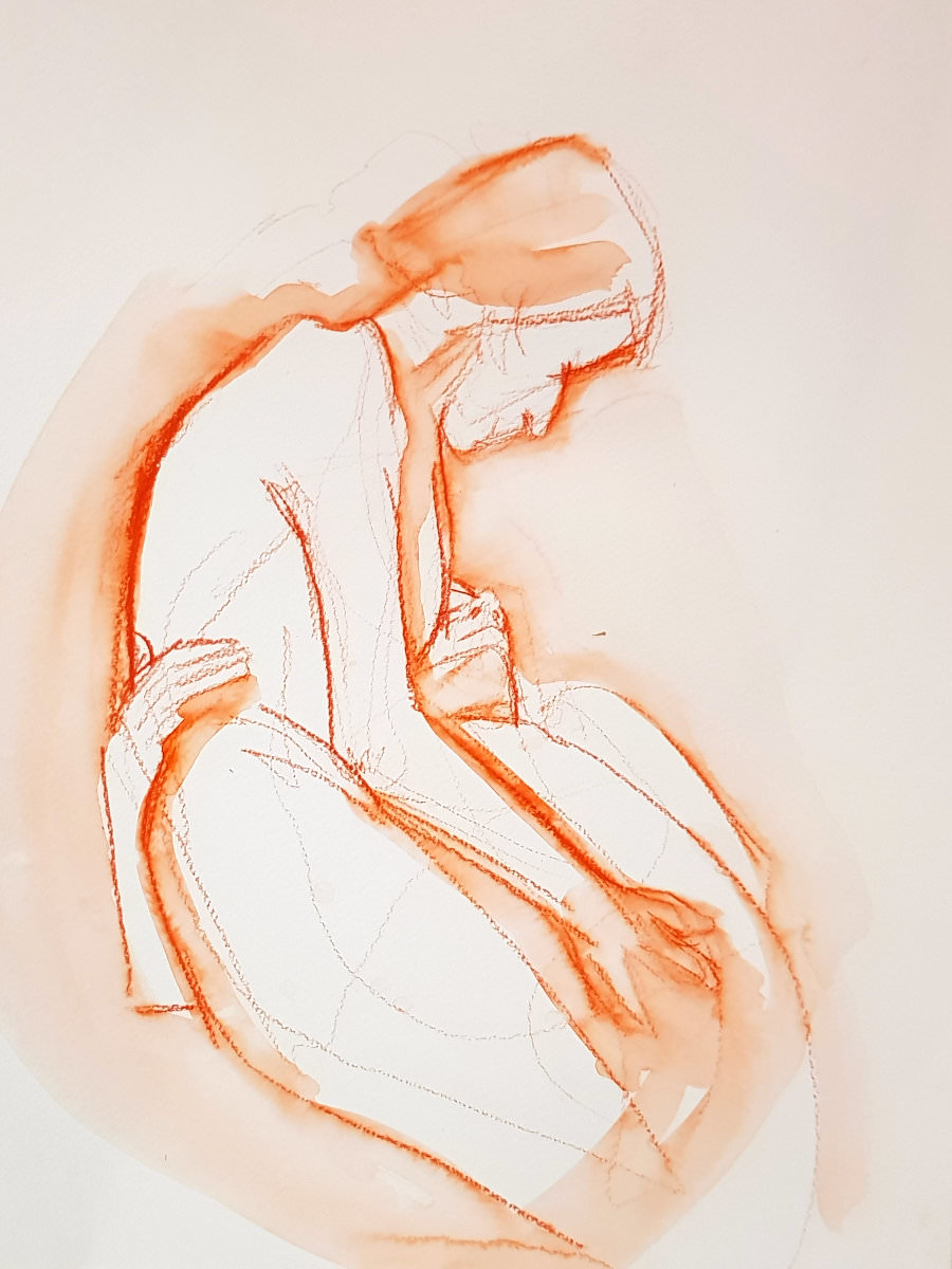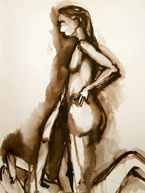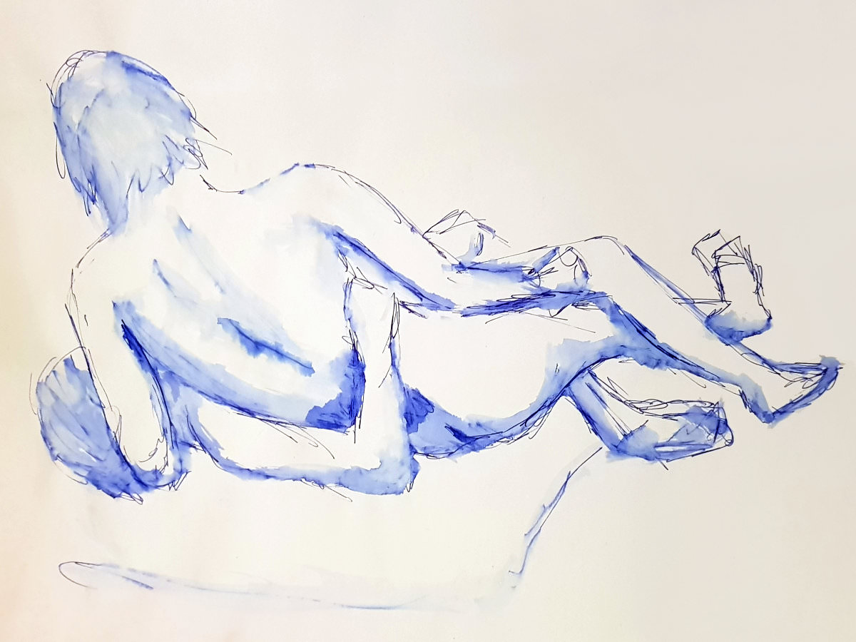 I first modelled here on 23 April 2015, not long after the group began. This five-year anniversary special was my twenty-third visit as the model, while on other occasions I’ve come simply to draw and stay for a drink afterwards. Every time is a joy, and it is clear that many artists feel the same way. Bravo, Catherine, and thank you.