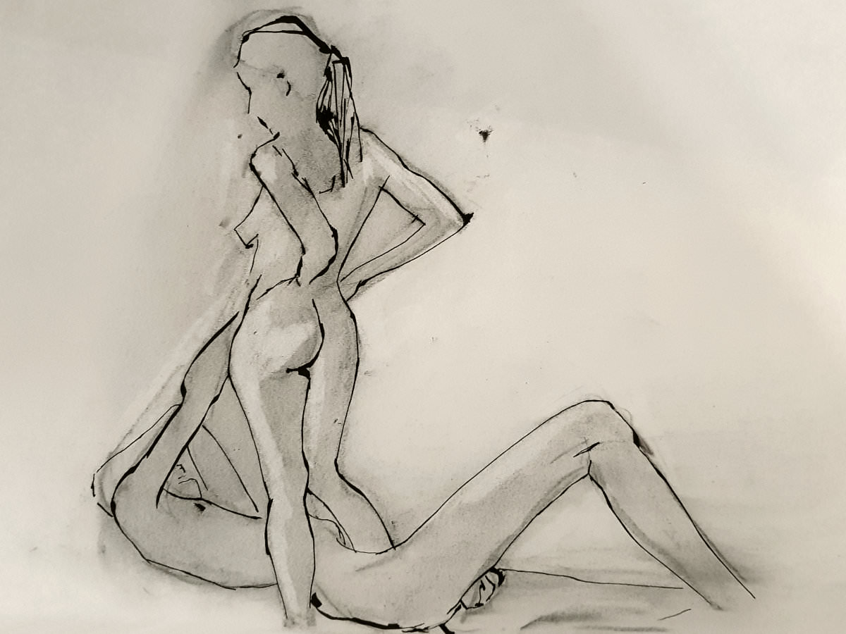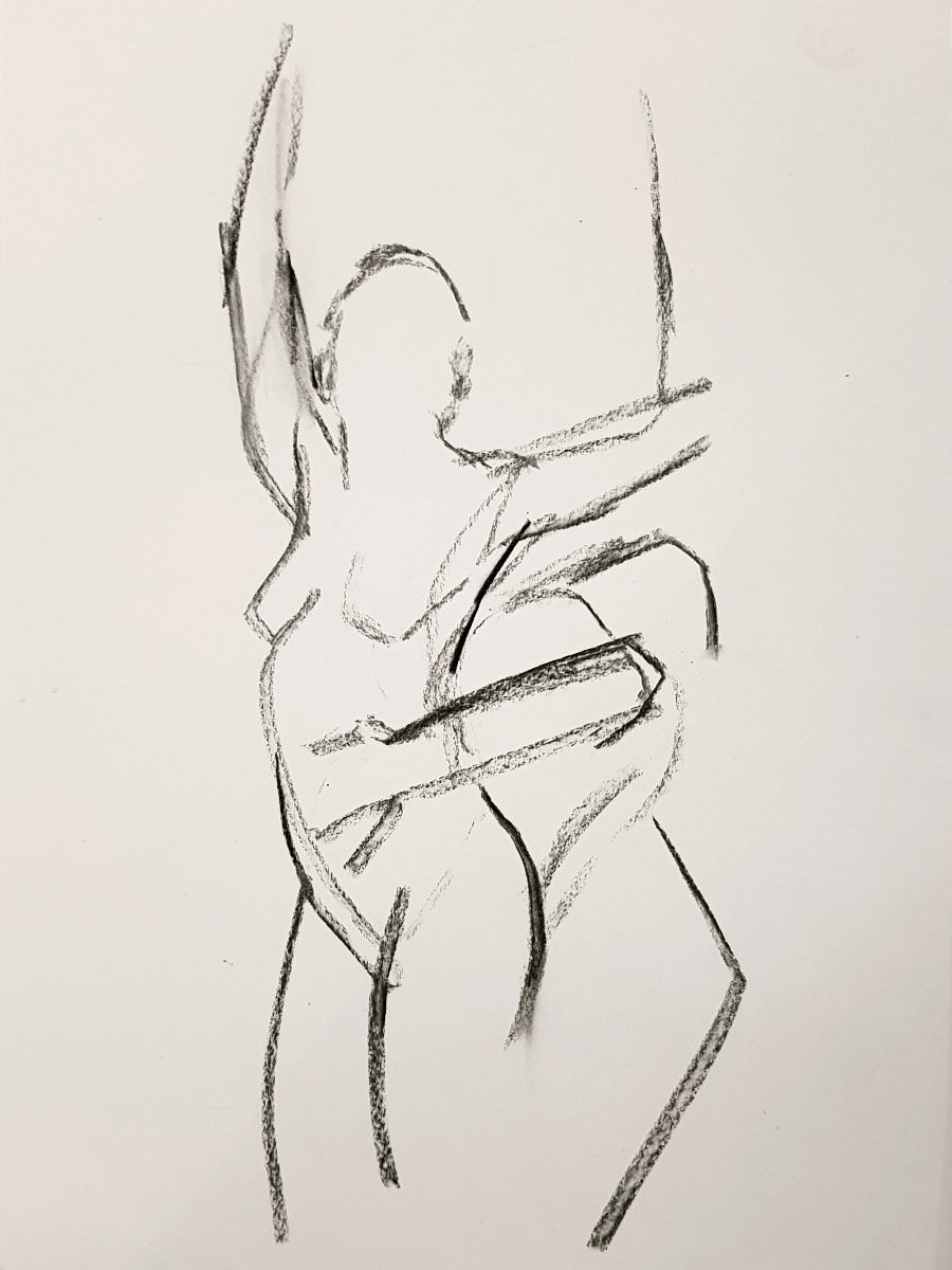 One of the most pleasurable venues to life model over the past half-decade has been The Star by Hackney Downs. To help celebrate the fifth anniversary of Drawing the Star life drawing, organiser Catherine Hall invited me and Esther back once more to pose as a couple. We opened this special treat with 10-minute and 5-minute poses.