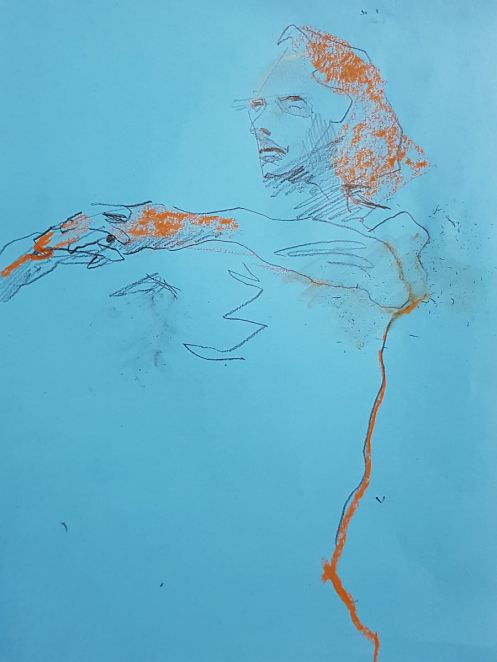 In spite of this – or more likely, because of it – everyone seemed determined to enjoy life, liberty and happiness together before isolation was enforced. There was a strong turn-out of artists at Life Draw Shine, all keeping calm and all carrying on. Organiser Ruth Pickard got us underway with poses of 1, 2, 3, 4, 5, 5, 10, 10 and 10 minutes.