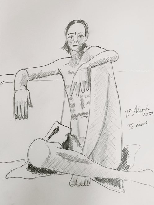 It’s been precisely one month since this evening of life drawing at Shine in Haringey, north London – my last life modelling gig before the coronavirus lockdown. People in the UK had begun dying of COVID-19 only the week before, and there was a shared sense of foreboding that all our lives would soon undergo a fundamental upheaval…