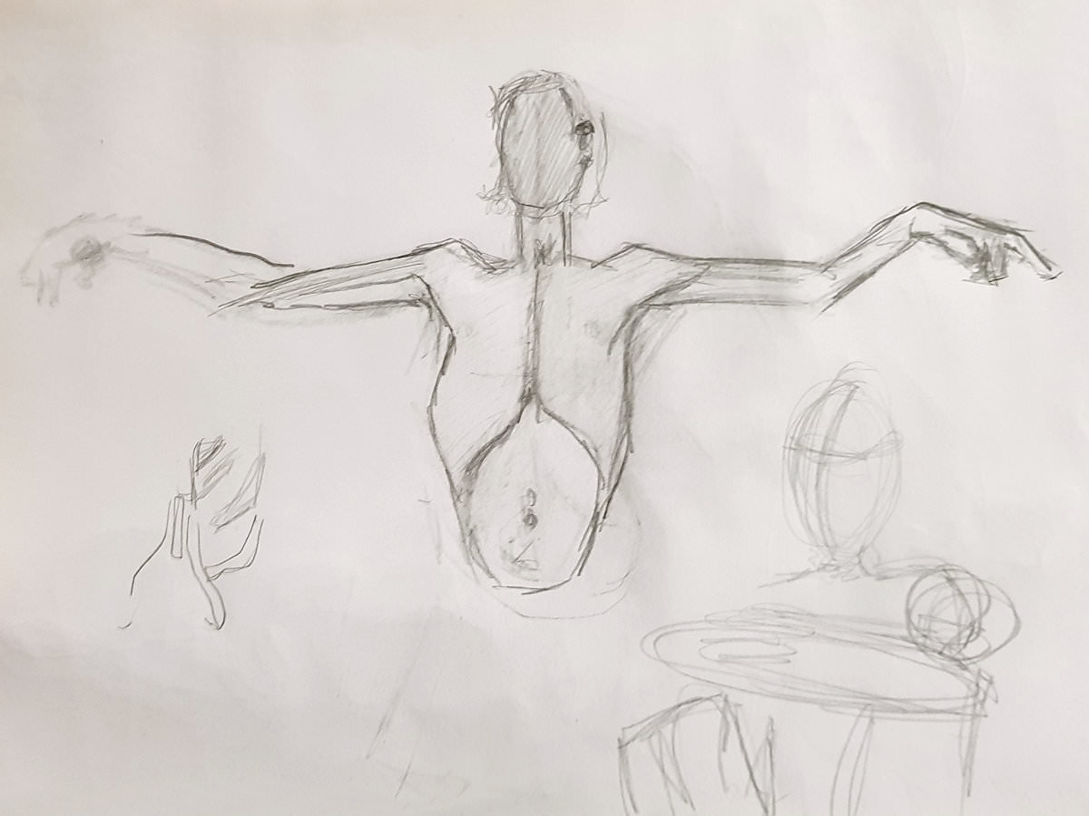 It’s been precisely one month since this evening of life drawing at Shine in Haringey, north London – my last life modelling gig before the coronavirus lockdown. People in the UK had begun dying of COVID-19 only the week before, and there was a shared sense of foreboding that all our lives would soon undergo a fundamental upheaval…