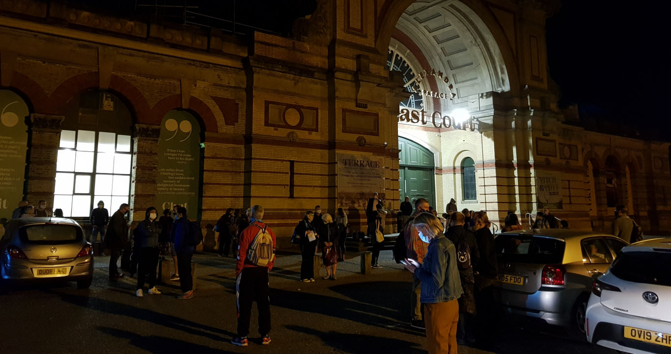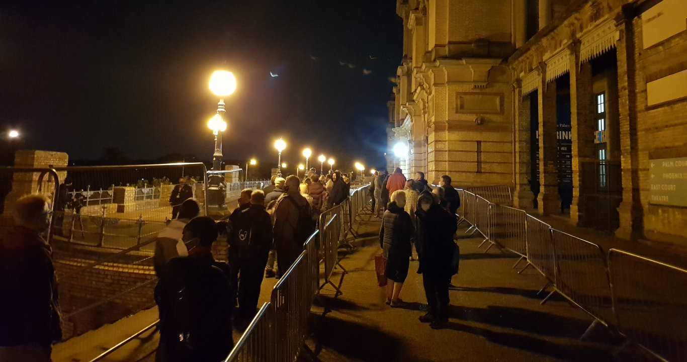 The alarm went off around 3am. We splashed ourselves, quit our room, dropped the keycard at reception, then set off into the black of night. It was a brisk half-hour walk to Alexandra Palace and, whilst the capital never truly sleeps, it was noticeable that traffic intensified as we neared our destination. The car park was filling with Spencer’s volunteers, in dozens rather than hundreds. Even so, I was surprised how quickly we found our friends Cy and Paula in the pale yellow electric gloom.