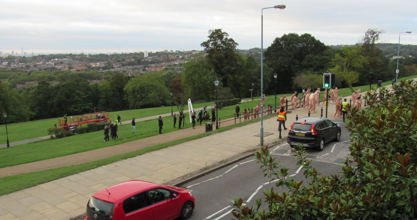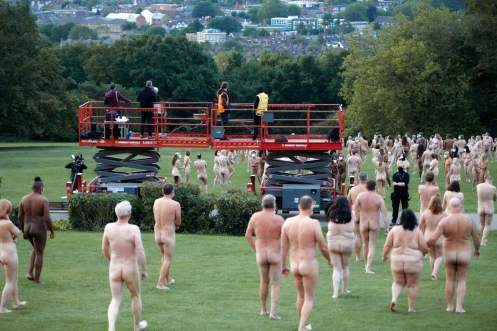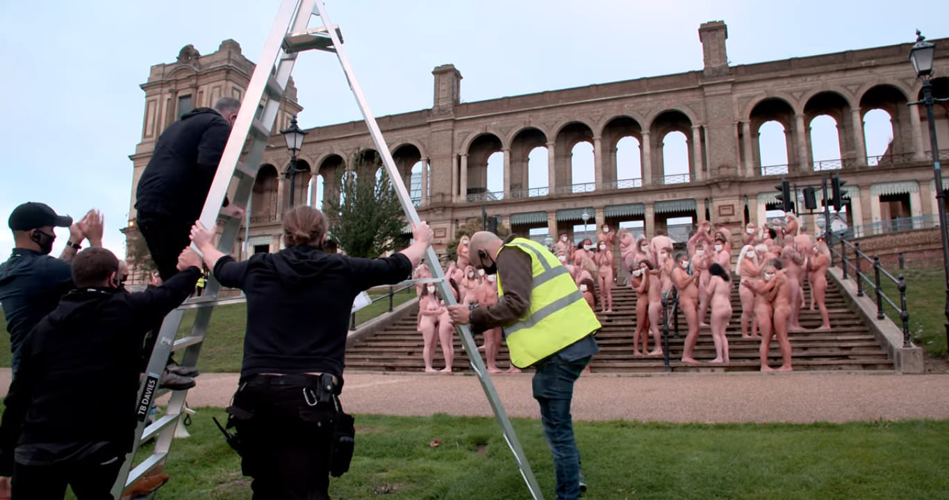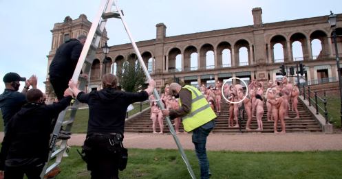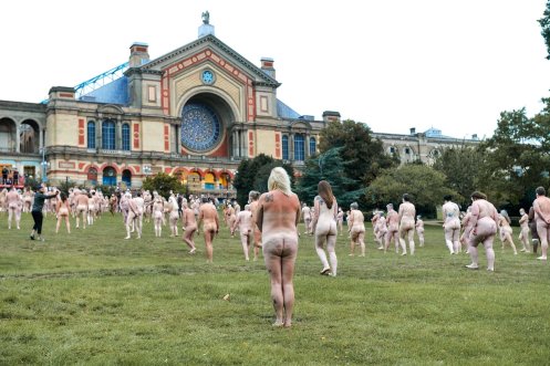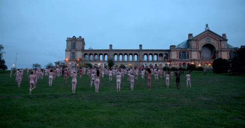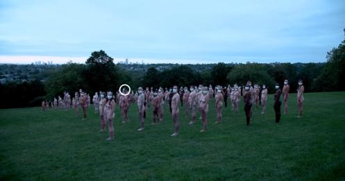 There were two hundred and twenty of us. Two hundred and twenty bodies, entirely naked except for thin white masks, jogging on the spot to keep warm whilst twirling with arms outstretched to maintain a two metre distance from those closest. As well as his assistants on the platform, Spencer had two or three more foot soldiers on the ground to keep us corralled in the area of each shot, and to correct various positional infractions that individuals would inevitably make.