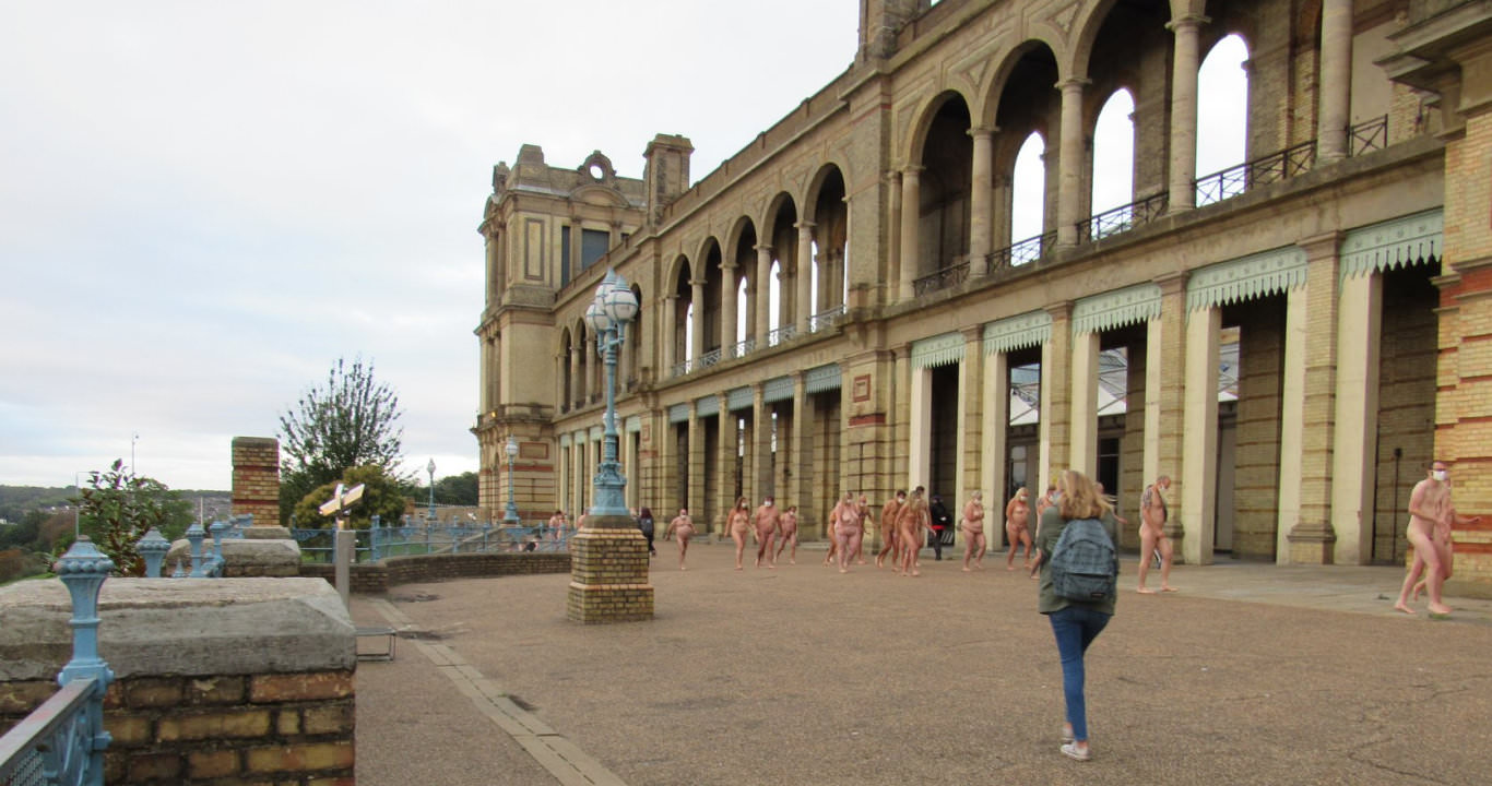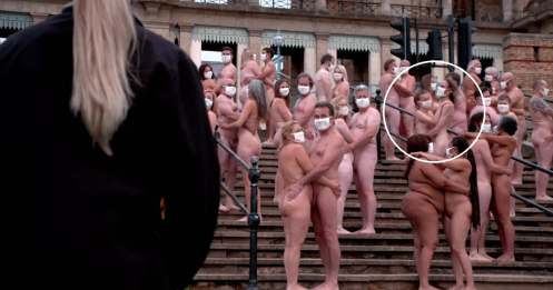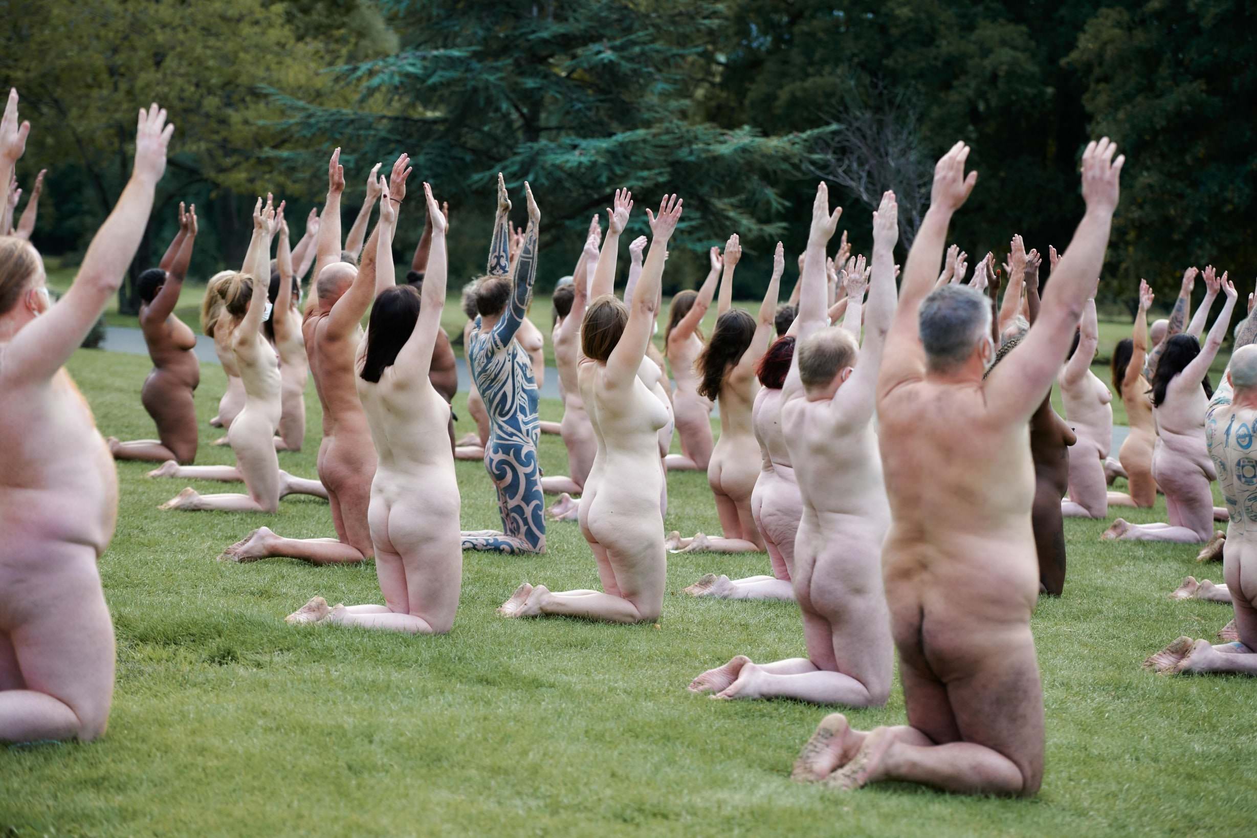 A communal, social distancing, mask wearing, human artwork. Participate for Spencer Tunick in a group, nude, photographic installation [which] is intended to be a creative outlet for participants to come together to make art in these trying times. It’s an artistic exploration of the possibilities of human connection. A visual statement with a message to stay strong, safe and united while making art together.