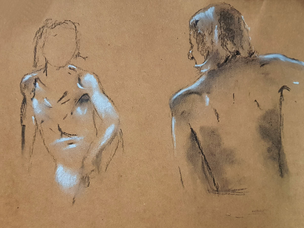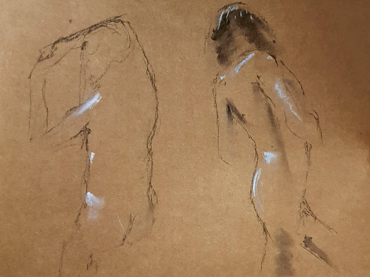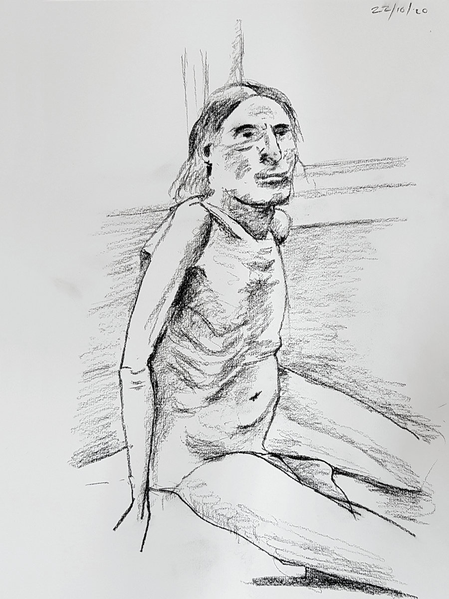 The group had clearly been missing social interaction as much as life drawing so our quarter-of-an-hour break ended up running to 25-minutes. It’s another vital part of life drawing groups that can’t be recreated online. Once underway again, we finished the evening with poses of 20 and 25 minutes. The temperature dropped towards the end but not enough for a heater to have been desirable. Overall, it went very well.