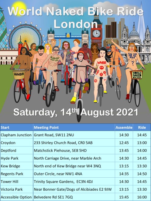 This was the one for which we yearned. Concerns about rider safety, spectator safety and public perception during the coronavirus (COVID-19) pandemic resulted in all UK World Naked Bike Ride (WNBR) events being cancelled last year. In 2021, however, they were back, with the biggest making its return on 14 August: WNBR London.