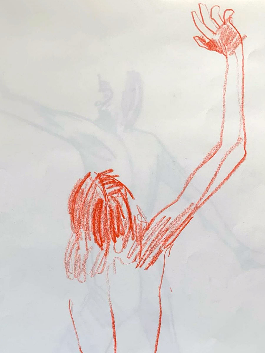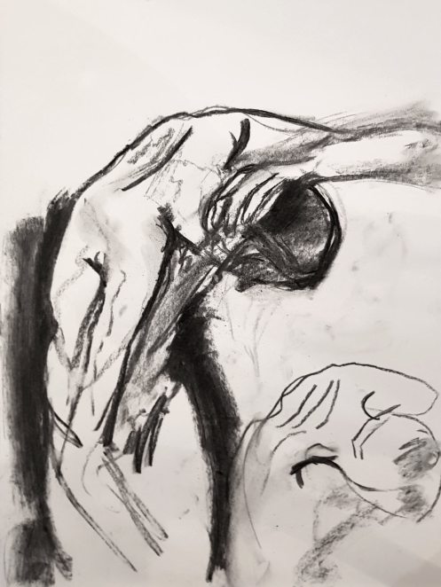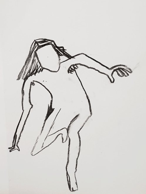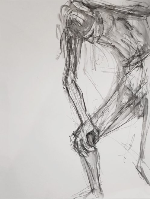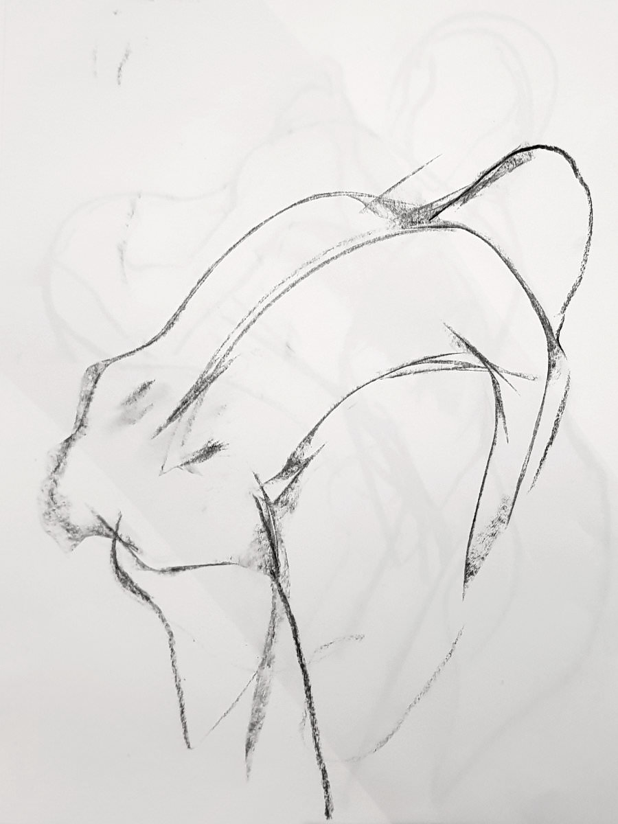 This venue, the group, the format, the music, the atmosphere, the organisation, have always energised me whenever I’ve modelled here. We began with very quick poses: 5, 4, 3 and 2 minutes, then three of 1 minute and three of 30 seconds. Working in the round, I knew what the next pose would be only a few moments before the artists.