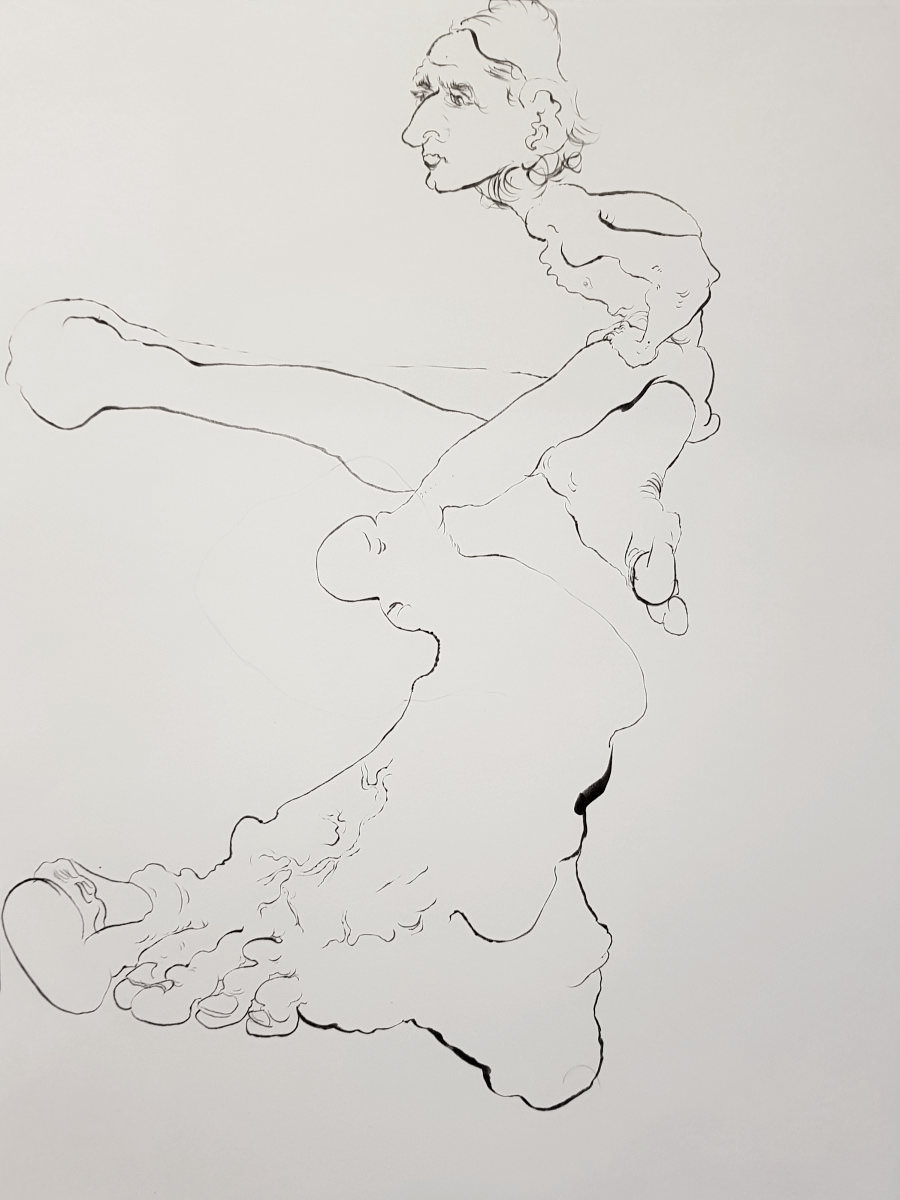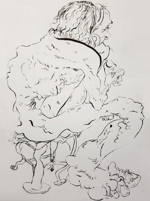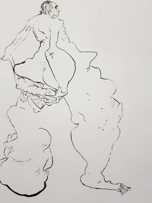 Applause at the end of both halves is a hopeful sign that a good time was had by all. Certainly there were some great drawings to show for it. As ever, these were spread upon the floor for general admiration. Works by professionals and amateurs lay side by side; the enjoyment of art-making is truly a gift for everyone.