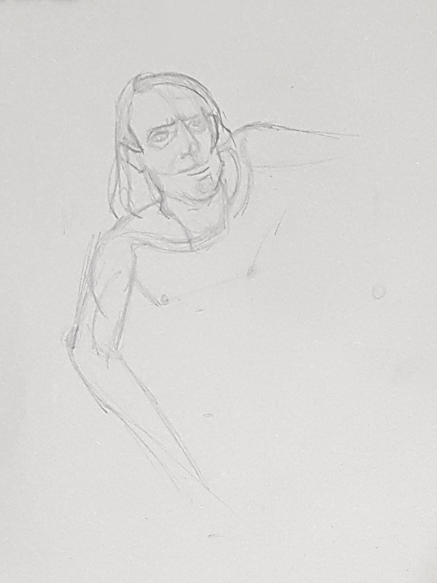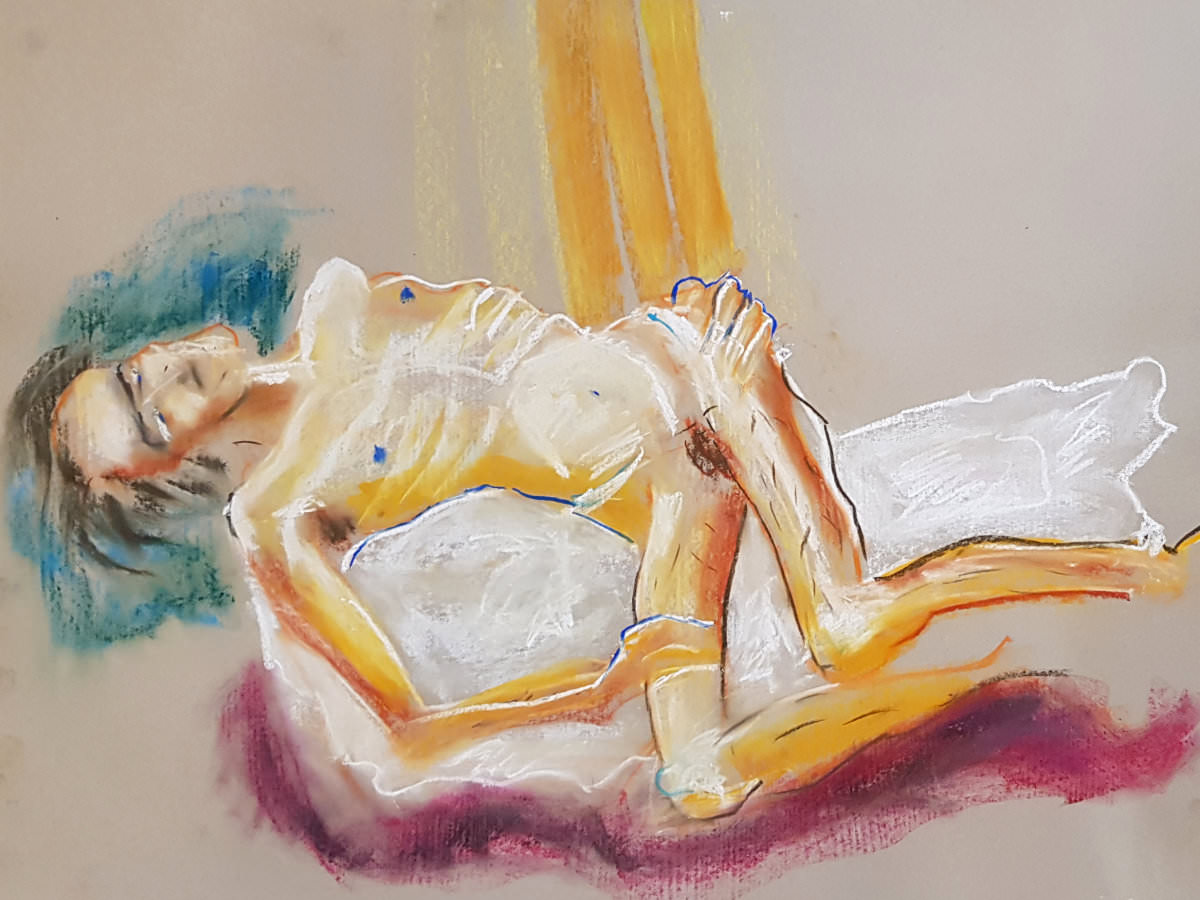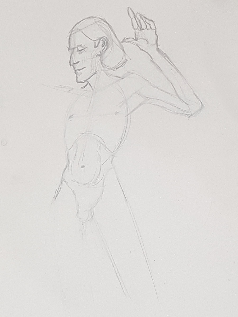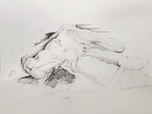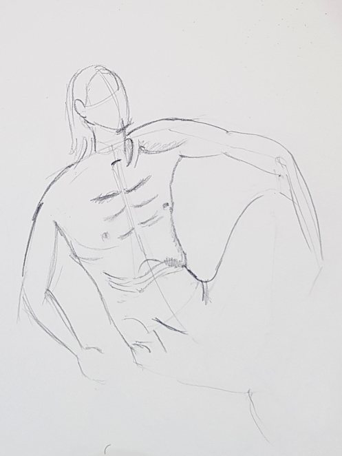A single pose of 40-minutes occupied the second half. I suspect that, left unchecked, destiny would have dealt me another long standing pose – it’s a curse on us angular models – but I really fancied reclining. I hadn’t been granted a reclining pose all year. All year! But with mercy in her heart, Jennifer allowed me this now.