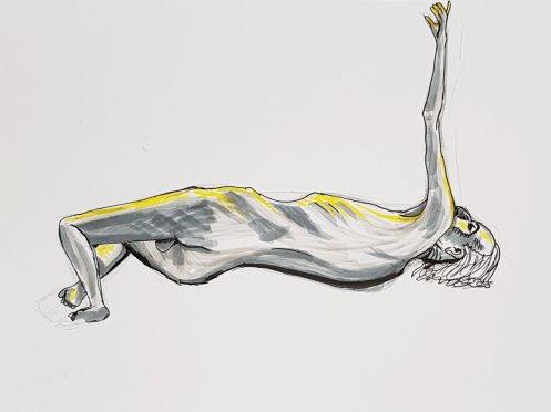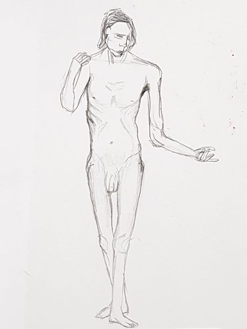 Such is my confidence – or maybe complacency – about rocking-up somewhere new to pose nude in front of strangers that I hadn’t even considered what to expect at this UCL Student Union life drawing session. All I knew was that its tutor would be artist, fellow life model and friend, Lily Holder. In extraordinary circumstances, however, at the eleventh hour and three-quarters, fate obliged Lily to drop out. So what now?
