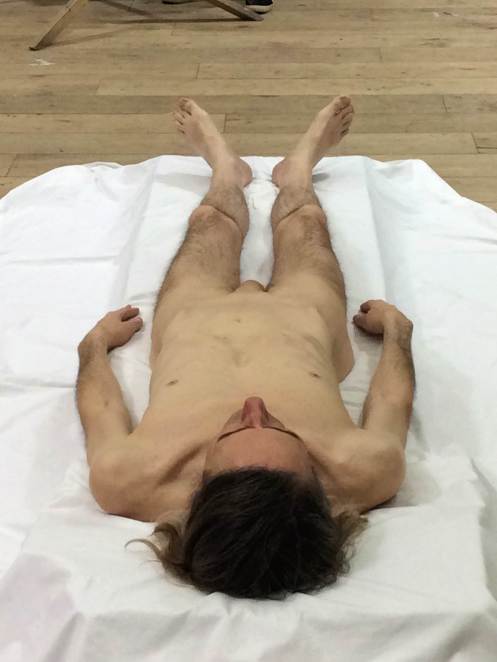 Time flies. Not only in the hallucinatory mindfulness of 2-hours as a naked corpse but also between occurrences; this was not the first time I’d died for Victoria. My previous lying-in-state at The Conservatoire had been nearly four years ago, back in February 2018. It’s taken maybe that long for me to realise the subtlety and power of this pose, particularly for a slightly skeletal figure: the late Steve Ritter. I should die more often!