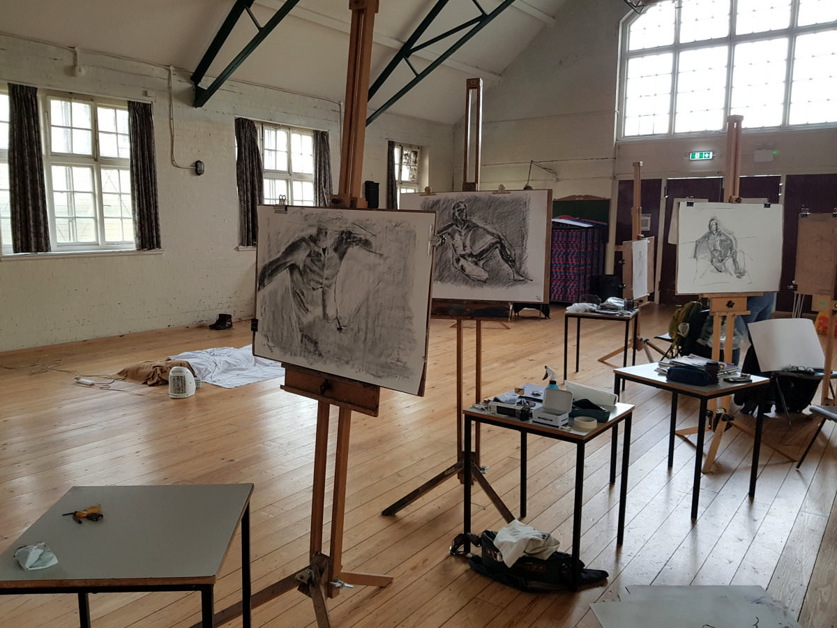 Ironically considering I turned up expecting to freeze, the only intervention required in the second half was to turn aside one fan heater that was slowly roasting my left shin. All then ended well. The hall’s heating issues meant full life drawing sessions had not been possible here since before Christmas, yet there was no sign of rustiness among the artists. Lots of strong works produced. A welcome return for all.