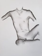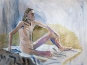 We resumed with one hour of the session remaining. Settling back into position, I did my best to rediscover the pose. Always slightly trickier than would be imagined, even with masking tape markers as a guide. One relaxes into a new pose but must use all one’s muscles for an act of exact replication. I think we got there, or extremely close, and continued to the end without requiring a further pause.