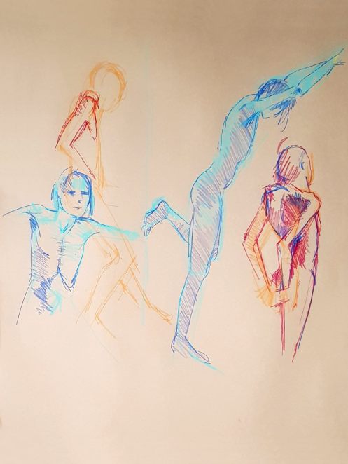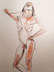 When Esther and I modelled for SketchPad Drawing at The Prince Regent, Herne Hill in January 2020, nobody suspected a prolonged pandemic hibernation was only six weeks away. Life drawing easels went in a cupboard on 11 March 2020 and didn’t re-emerge until 10 November 2021. How hungry for art the regulars must have been! Certainly I was delighted to return, and happy to see so many familiar faces.