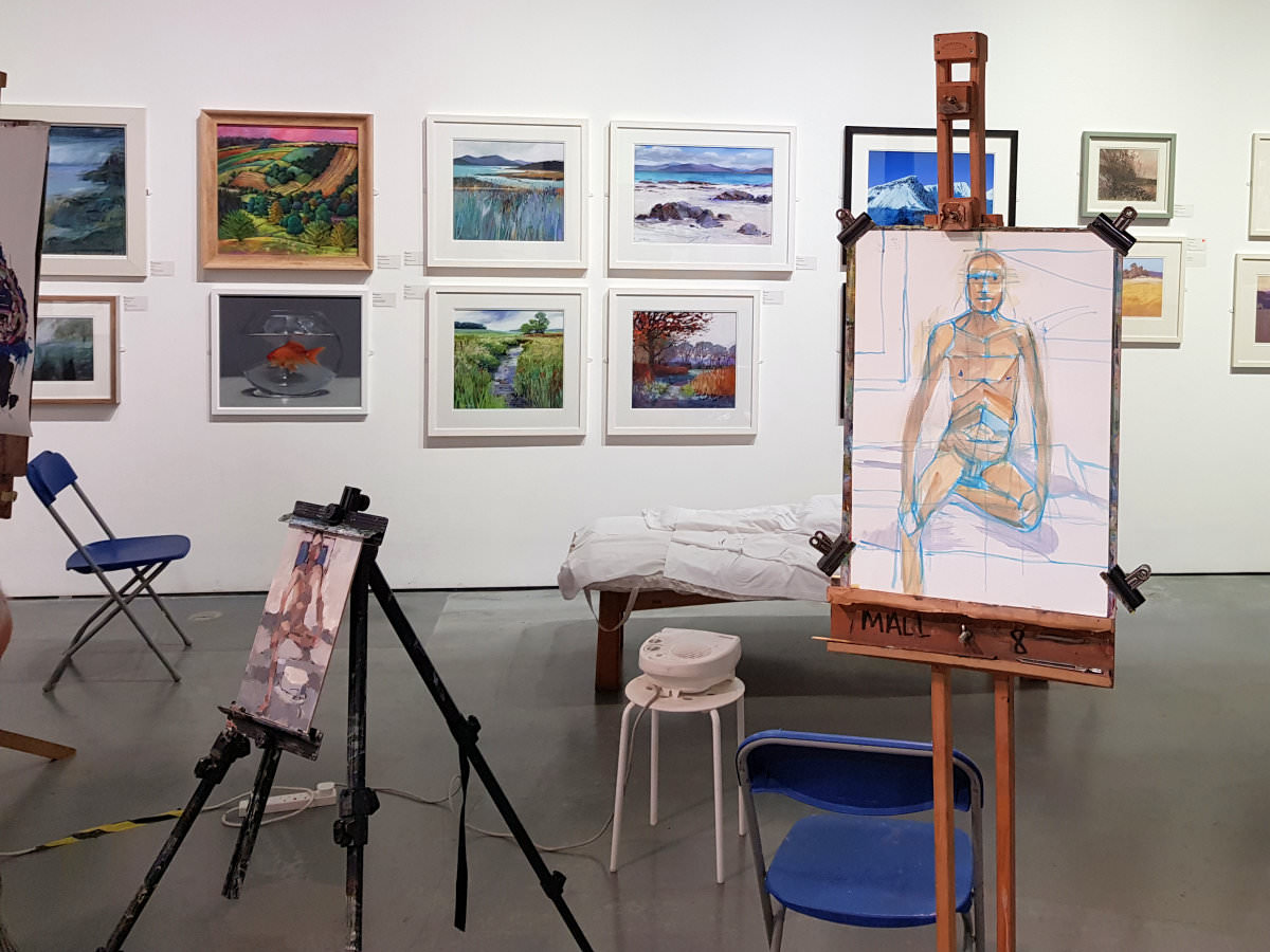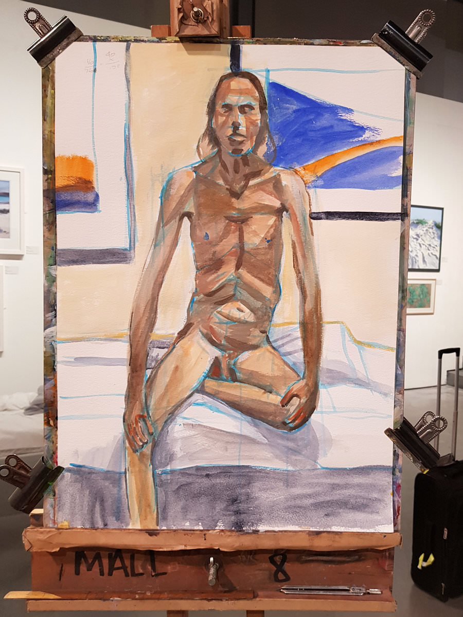 The interval lasts 15 minutes. A voice from the main gallery calls: “OK, it’s time to get started”. I resume as before. We repeat as before. One hour passes. A hubbub in the short-pose space tells me time’s up. I remain motionless. Artists are packing up to go home. Still I sit. Still my artists paint. Then one says, “I think that’s it”. We exchange a “thank you”. I get dressed… And, you know, everyone I talk with is genuinely lovely.
